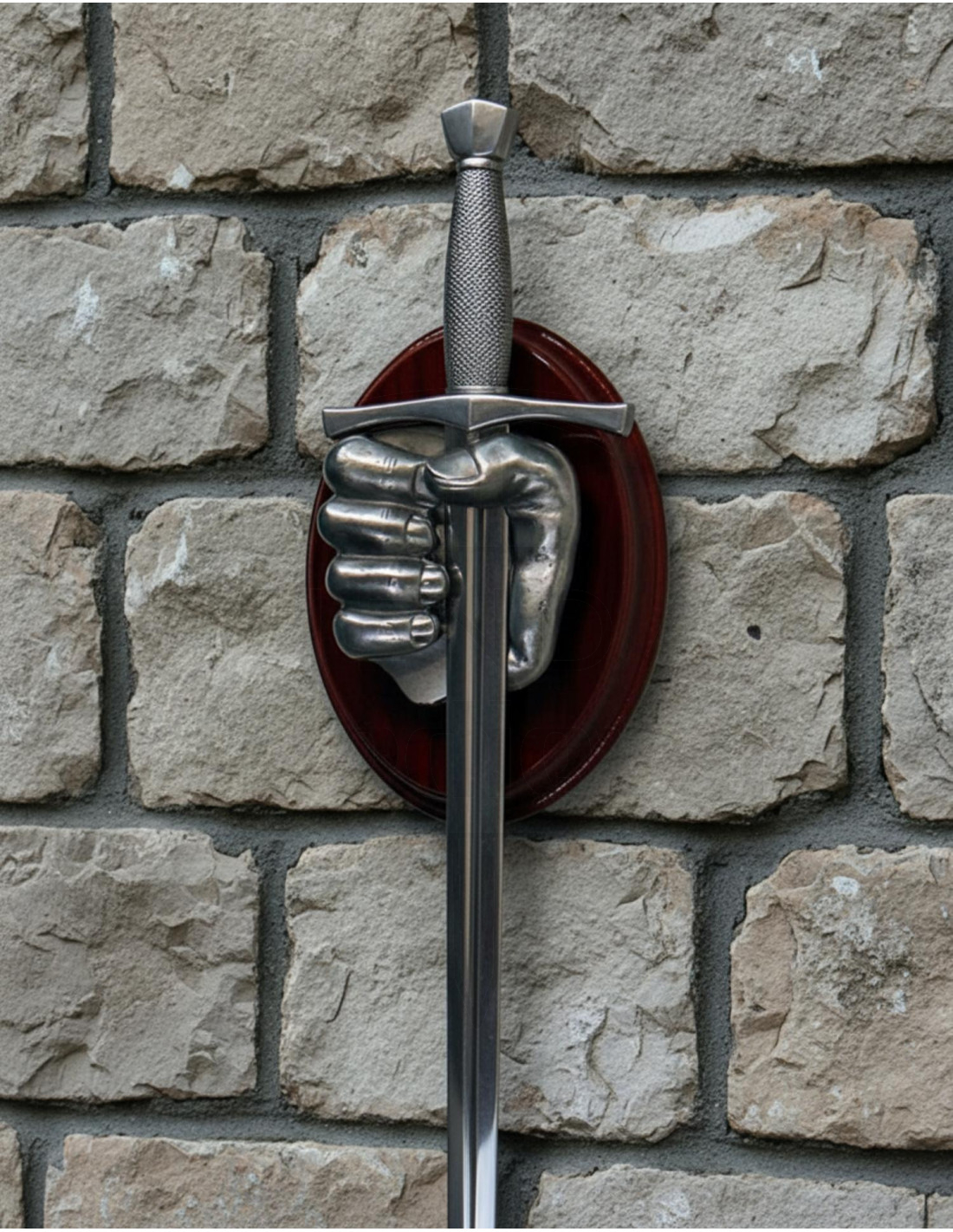 Unsere Halterung ist für Schwerter mit einer Klingenbreite von bis zu 4 Zentimetern und einer maximalen Dicke von 0,5 cm ausgelegt. Darüber hinaus verfügt es über eine silberne Oberfläche, die ihm einen Hauch von Vornehmheit und Eleganz verleiht.