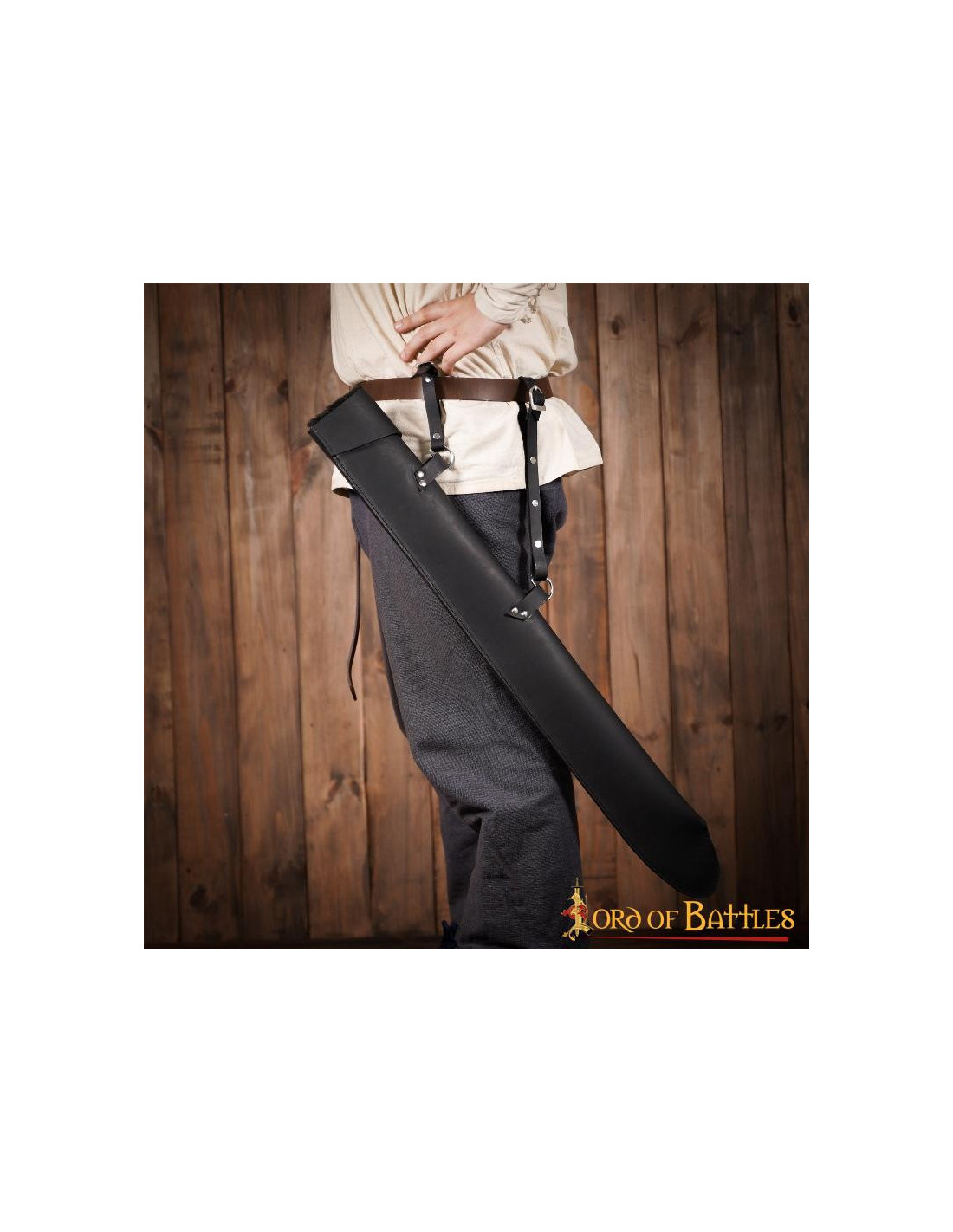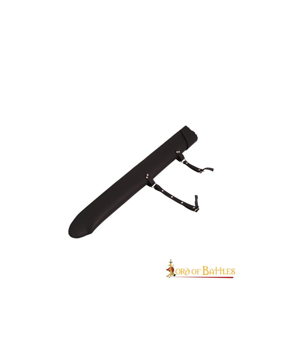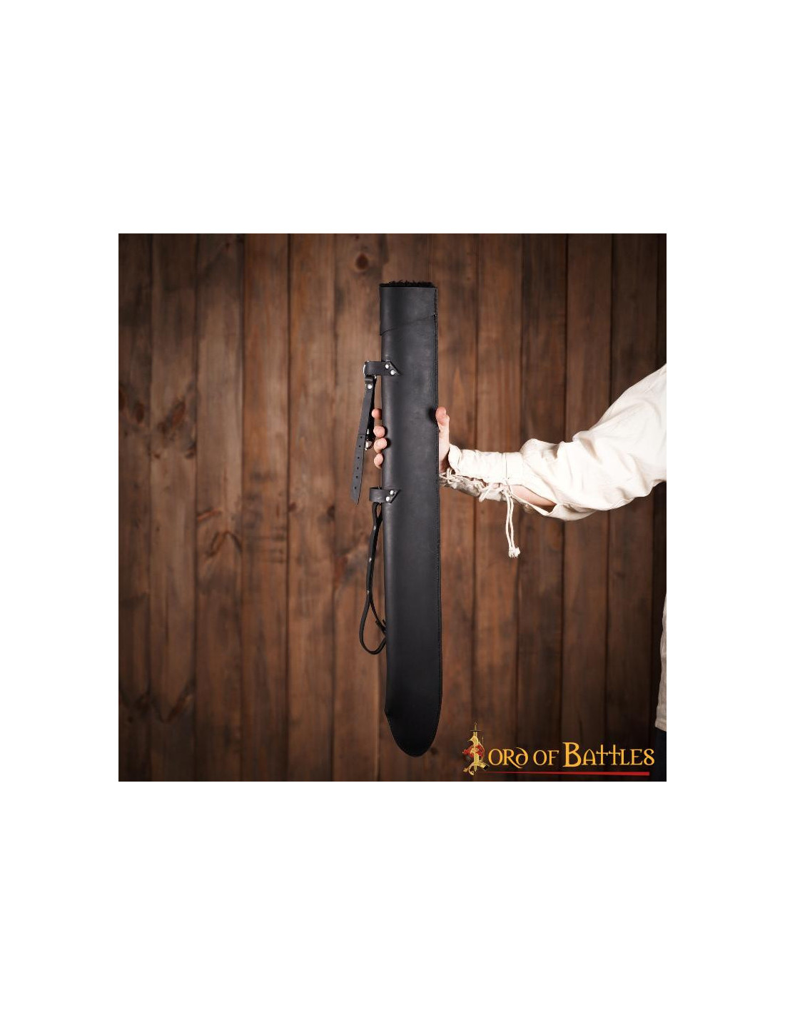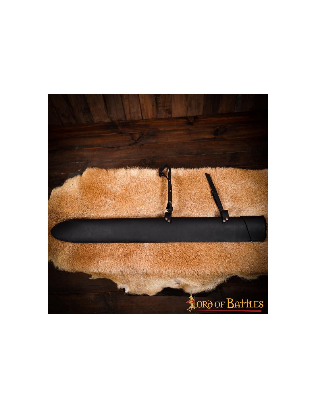 Handgefertigte Lederscheide für LARP-Schwerter, 87 cm. Schützen und verschönern Sie den Stil Ihres Lieblingsschwerts mit unserer tollen Lederscheide! Das Besondere und Einzigartige an unserer Lederscheide ist, dass sie aus hochwertigem Echtleder mit einer Dicke von 3,0–3,3 mm handgefertigt ist. Sein Design wurde sorgfältig trommelgefärbt, wodurch jedes Stück eine satte Farbmischung mit dem Leder und ein elegantes mattschwarzes Finish erhält.