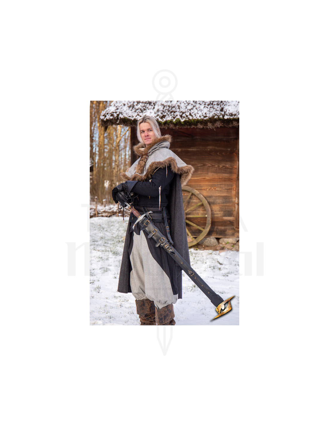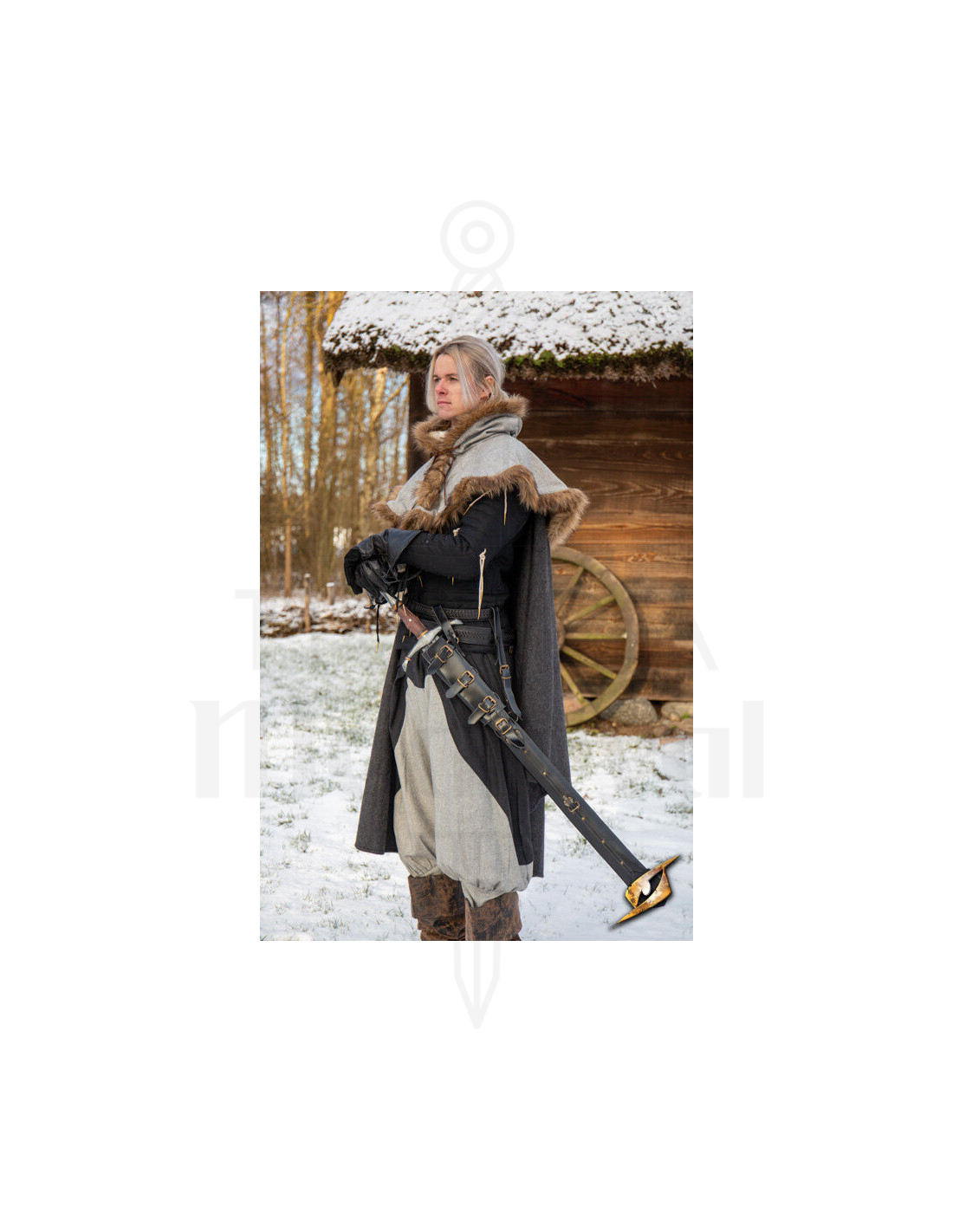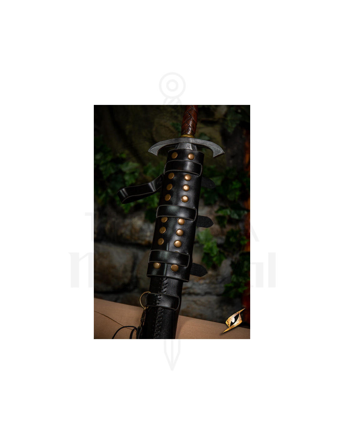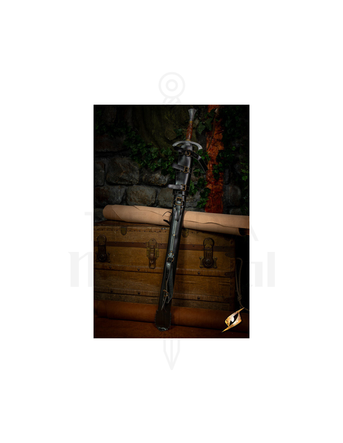 Machen Sie sich bereit für eine Reise durch Zeit und Abenteuer mit unserer verstellbaren Scheide aus schwarzem Kunstleder ! Möchten Sie Ihr Schwert mit Stil und Komfort schützen und transportieren? Dann sind Sie hier genau richtig!