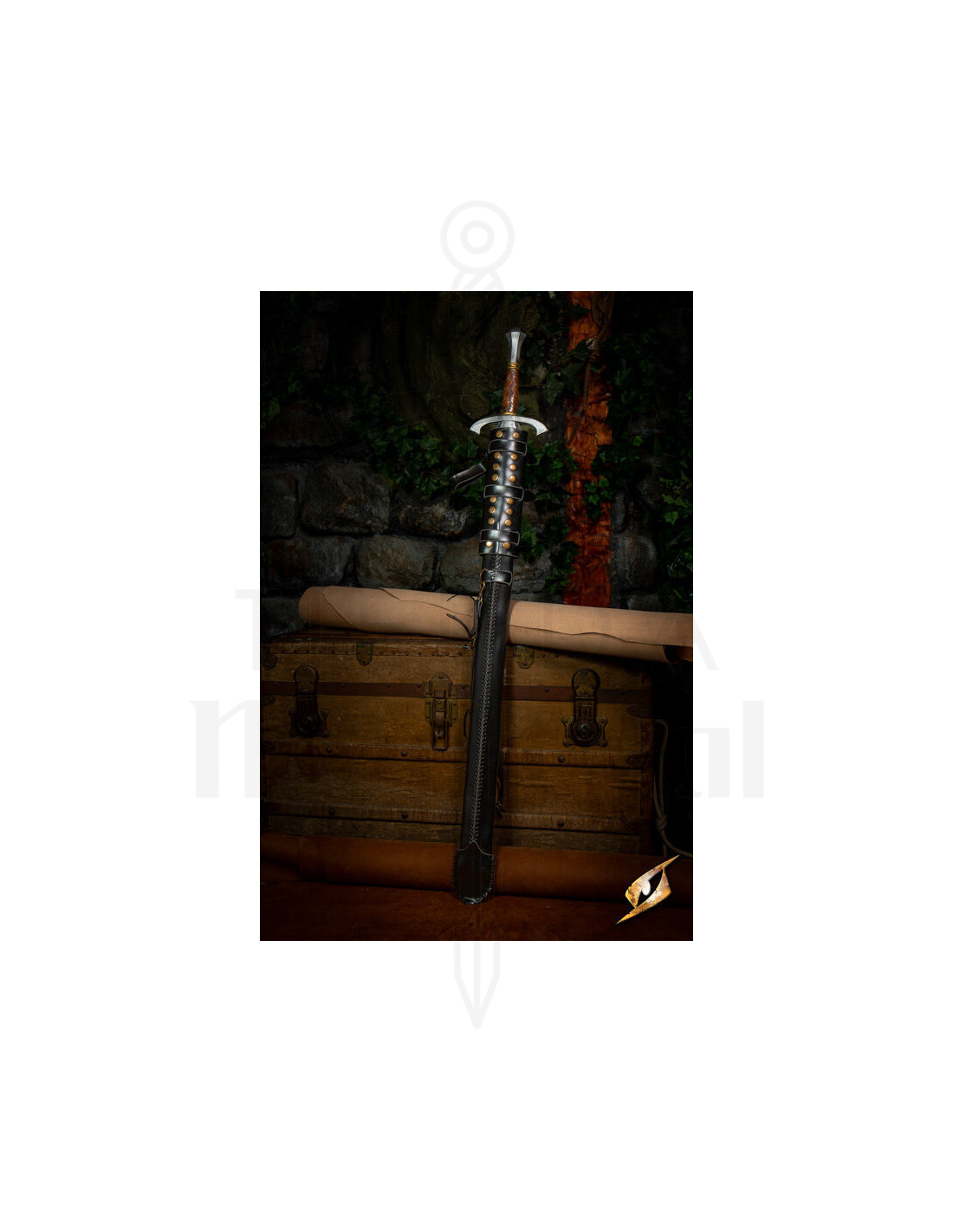 Bei der Entwicklung dieses Pods wurde auf Vielseitigkeit geachtet. Es besteht aus hochwertigem Kunstleder und ist langlebig und elegant zugleich. Aber das Beste von allem ist die verstellbare Länge, die von 75 cm bis 96 cm reicht. Ja, Sie haben richtig gehört! Mit einfachen Knöpfen und Schnallen können Sie es an jedes Schwert anpassen, egal ob Kurz-, Bastard- oder Langschwert.