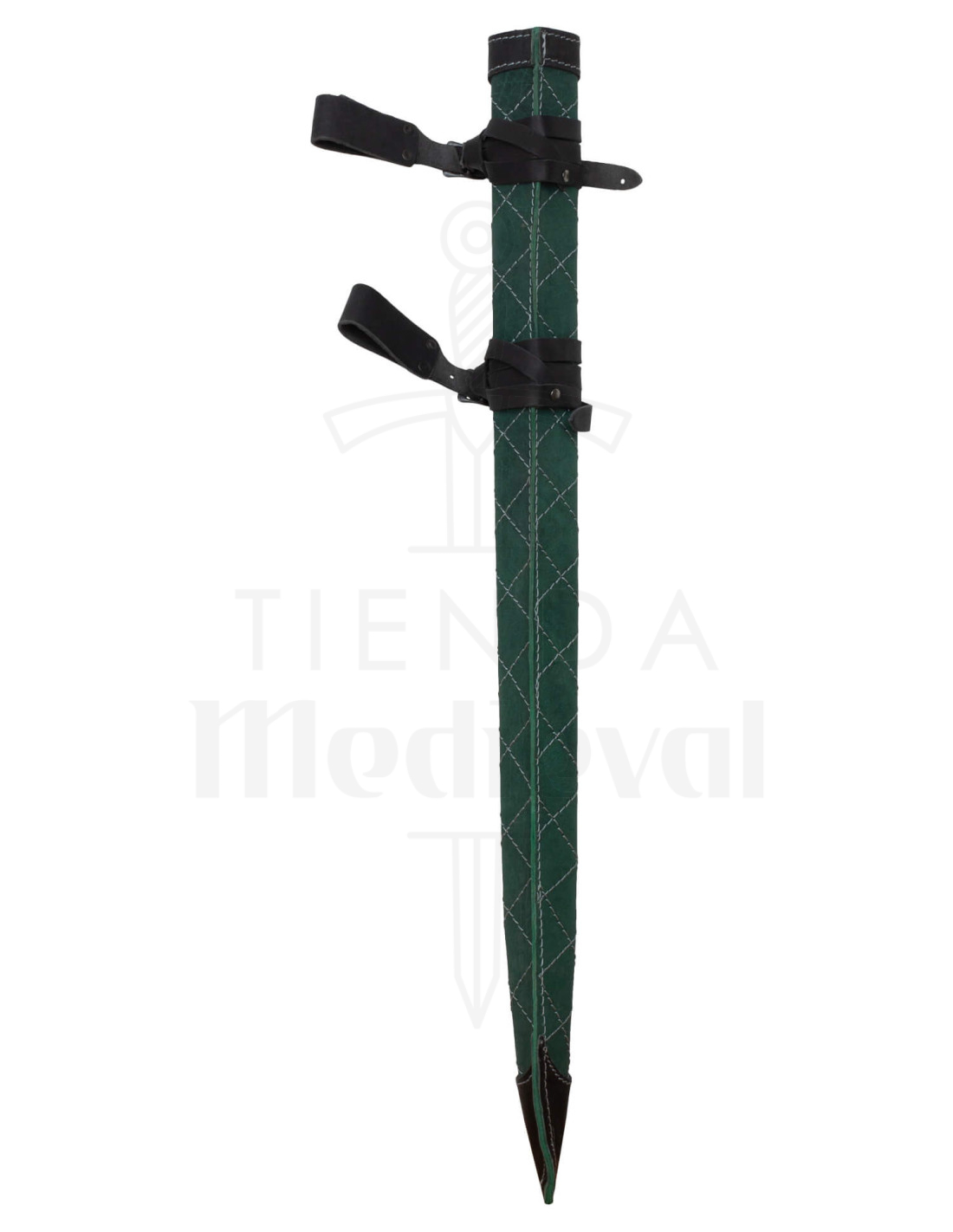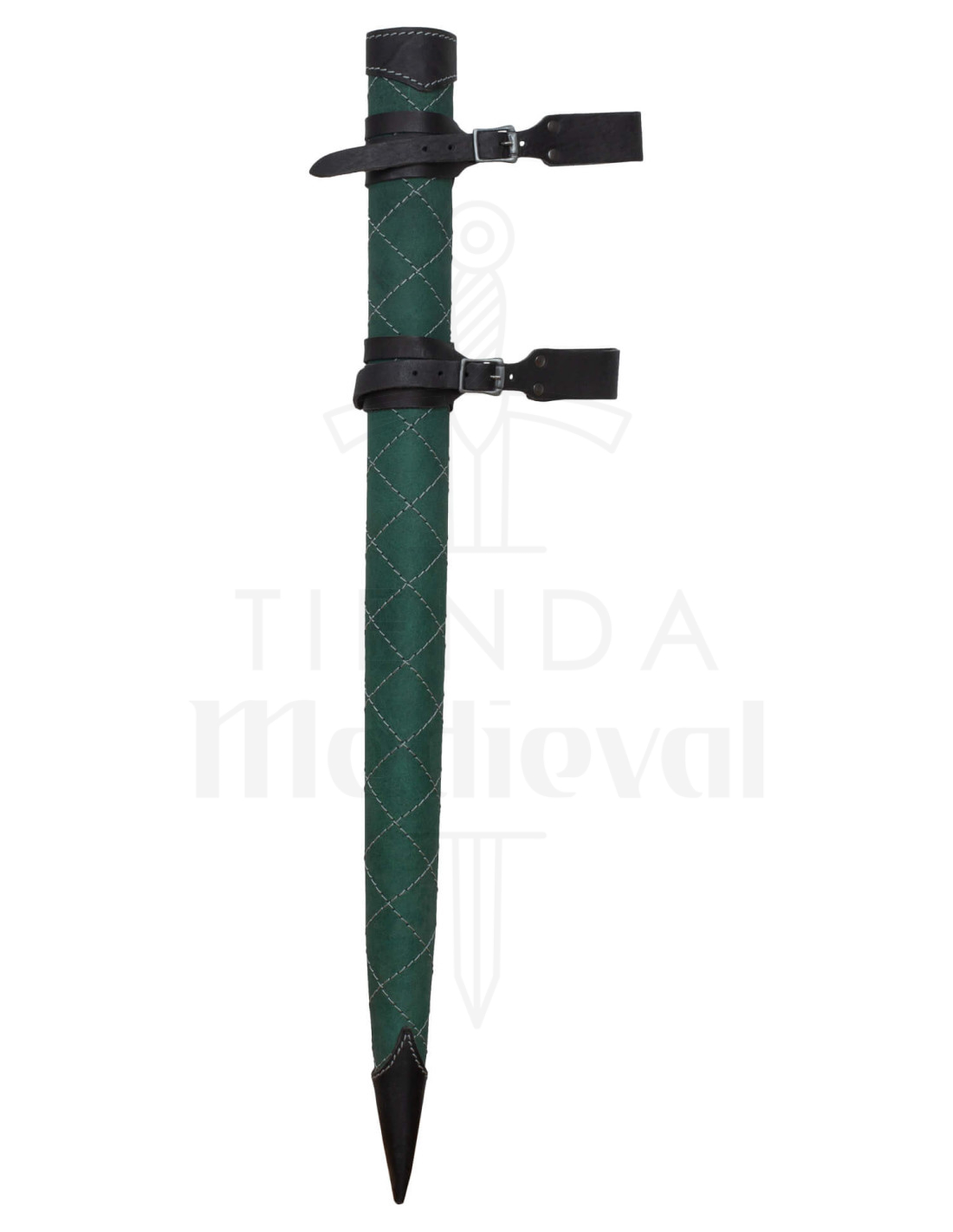 Suchen Sie eine Hülle, die Stil und Funktionalität für Ihr Schwert vereint? Die grüne Lederscheide, speziell für das Modell ‚Dante‘ aus unserer Beasthunter-Serie entworfen, ist die perfekte Wahl. Mit einem Finish, das an traditionelle Säbelhüllen erinnert, zeigt sie Rautennaht, die einen eleganten und robusten Akzent setzen – ideal für Abenteurer, die Ästhetik und Langlebigkeit schätzen.