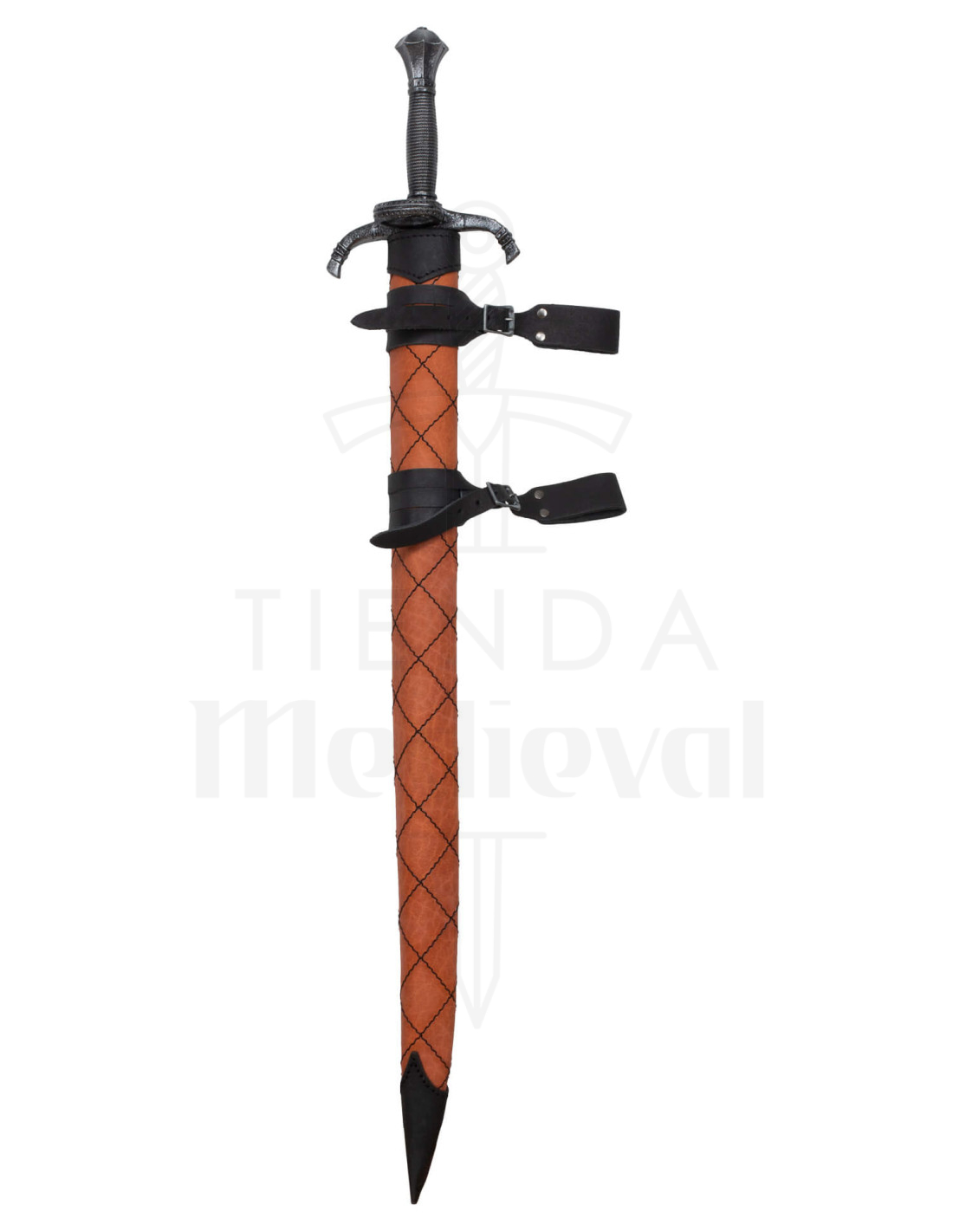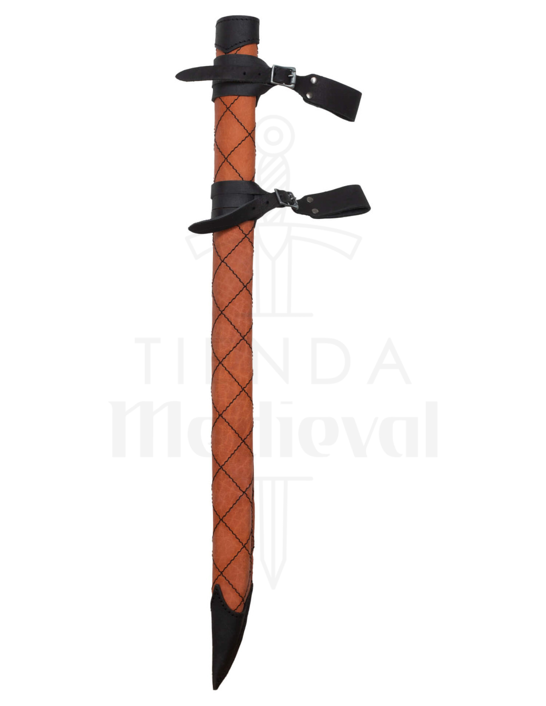 Mit einer geeigneten Länge für Schwerter bis zu 86,5 cm und einer Breite, die mit Klingen bis zu 6 cm Dicke kompatibel ist, wurde die Größe für Waffen wie unsere berühmten Hammerkunst-Langschwerter konzipiert. Die Qualität des Leders, eines natürlichen Materials, garantiert Langlebigkeit und ein Finish, das mit der Nutzung besser wird, da es leicht geölt ist, um es zu schützen und seine Farbe zu betonen. Zudem macht seine handwerkliche Herstellung jedes Stück zu einem Unikat mit einzigartigen Variationen, was ihm einen exklusiven Charakter verleiht.