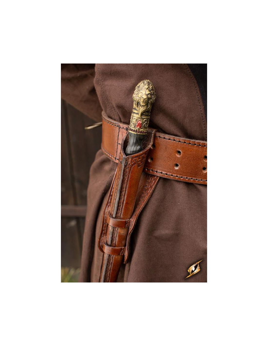 Schützen und transportieren Sie Ihren Zauberstab mit Stil und Eleganz mit unserer Scheide mit Schwert für Zauberstäbe. Diese aus hochwertigem, pflanzlich gegerbtem Leder gefertigte Scheide bietet nicht nur optimalen Schutz für die Waffe Ihrer Wahl, sondern verleiht Ihrem Hexen- oder Zauberer-Outfit auch einen Hauch von Magie und Geheimnis.