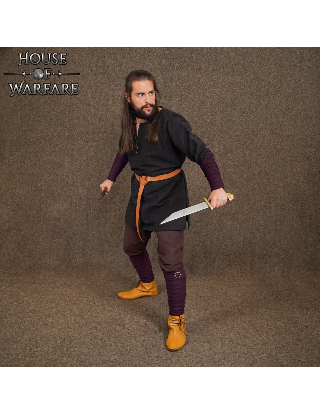 Diese gewickelten Stoffstreifen in einem tiefen Dunkelbraun bieten weit mehr als eine ästhetische Anspielung: Sie fungieren als praktische Verstärkung, die die Unterarme während simulierten Kämpfen, Banketten und Rollenspiel-Events schützt. Der leinenartige Stoff sorgt für ein robustes Gefühl, bleibt dabei aber atmungsaktiv, sodass du dich frei bewegen und stundenlang bequem bleiben kannst.