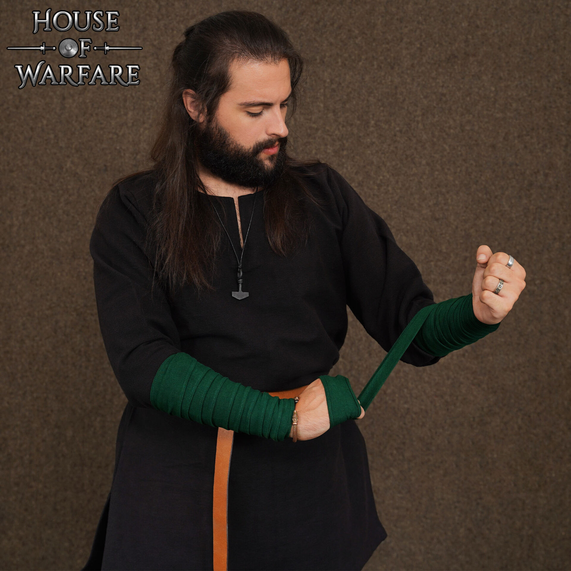 Wenn Sie Wikingerschoner für den Unterarm aus Baumwollleinwand in Flaschengrün kaufen möchten, sind hier eine Option, die Authentizität und Funktionalität vereint, gedacht für diejenigen, die ein langlebiges und elegantes Zubehör suchen. Fügen Sie diese Bänder zu Ihrer Ausrüstung hinzu und genießen Sie Schutz, schnelle Anpassung und ein Aussehen, das Geschichten in jedem Detail erzählt.