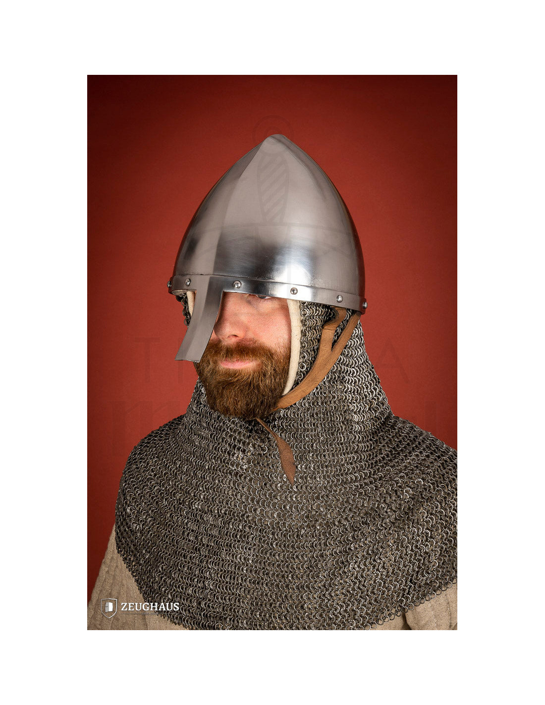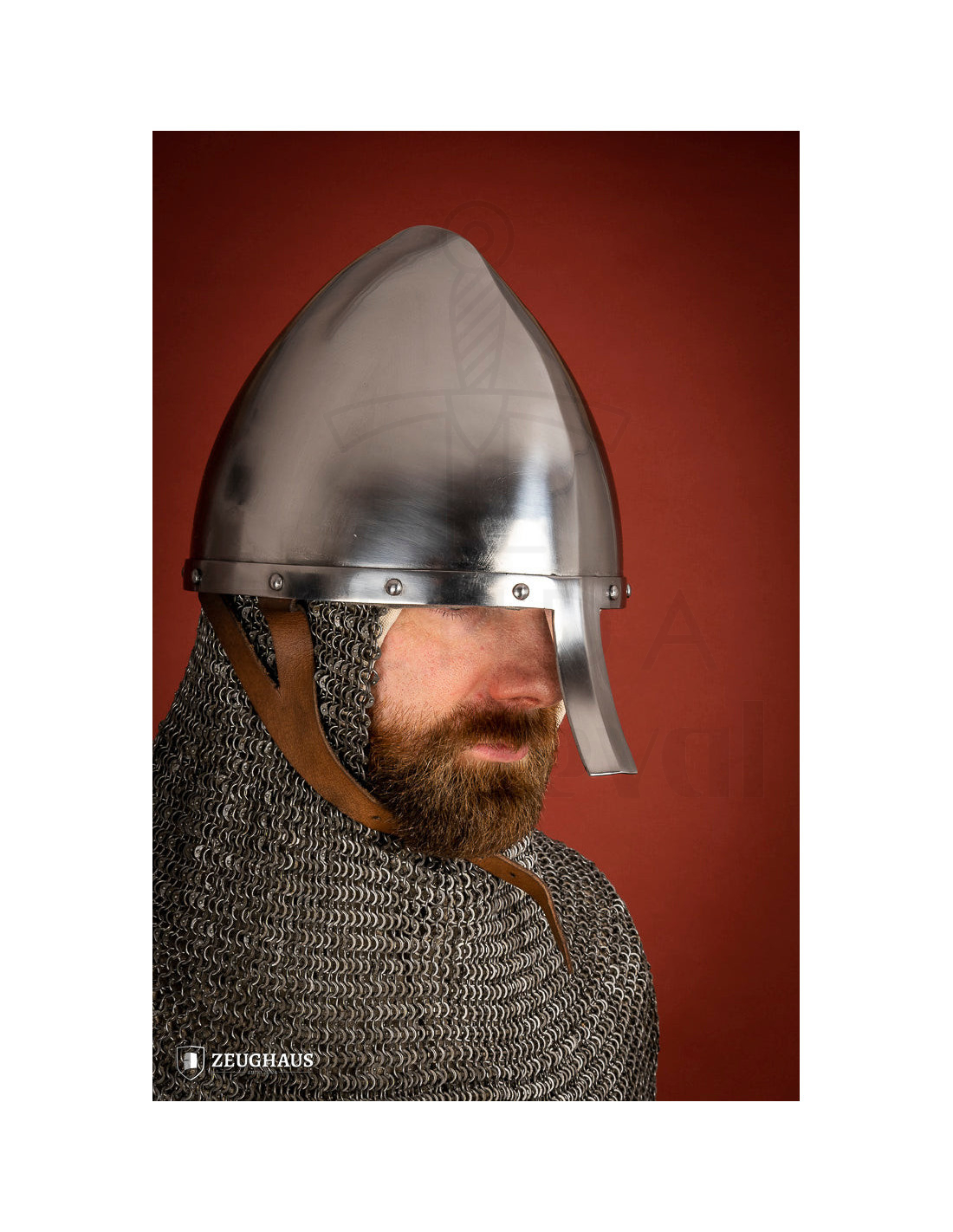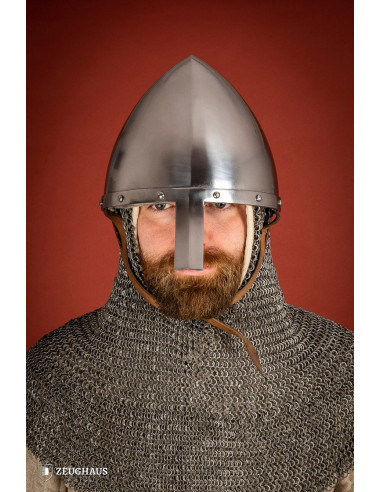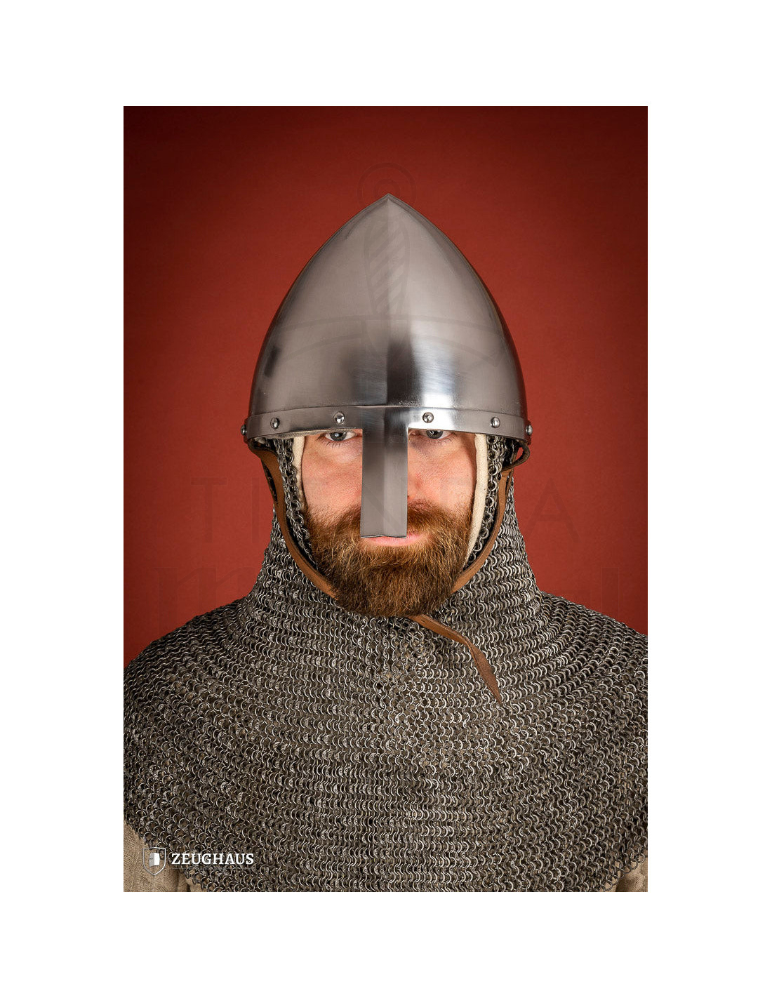 - Gebogener Nasenschutz: Der gebogene Nasenschutz erhöht nicht nur die historische Authentizität, sondern bietet auch zusätzlichen Schutz für Ihr Gesicht im Kampf. Bewahren Sie Ihre Identität, während Sie sich Ihren Gegnern stellen!
