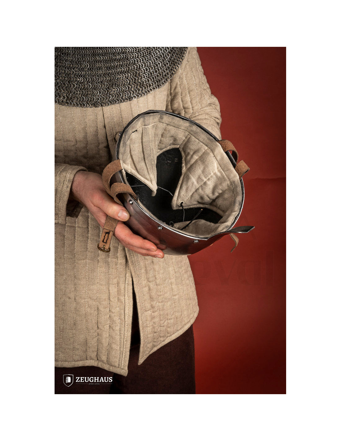 - Handwerkliches Design: Jeder Helm ist dank der handwerklichen Herstellungsmethoden ein Unikat. Variationen in der Stärke des Stahls verleihen ihm einen einzigartigen Charakter und ein echtes handgeschmiedetes Aussehen.