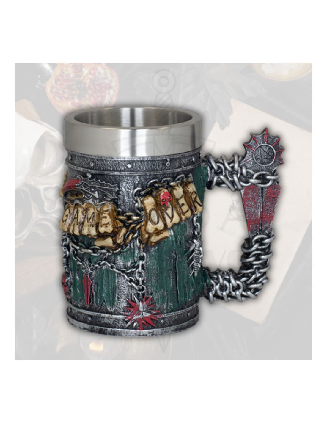 Entdecken Sie den Resinbecher SteamPunk Game Over von der Marke Tole10 und verleihen Sie Ihren Entspannungsmomenten einen einzigartigen und originellen Touch. Dieses Produkt kombiniert den retro-futuristischen Stil des Steampunk mit einem design, das voller Details steckt und niemanden gleichgültig lässt. Hergestellt aus Harz mit einem inneren Metallbecher, ist dieser Becher nicht nur robust, sondern auch beeindruckend in seiner Ornamentik.