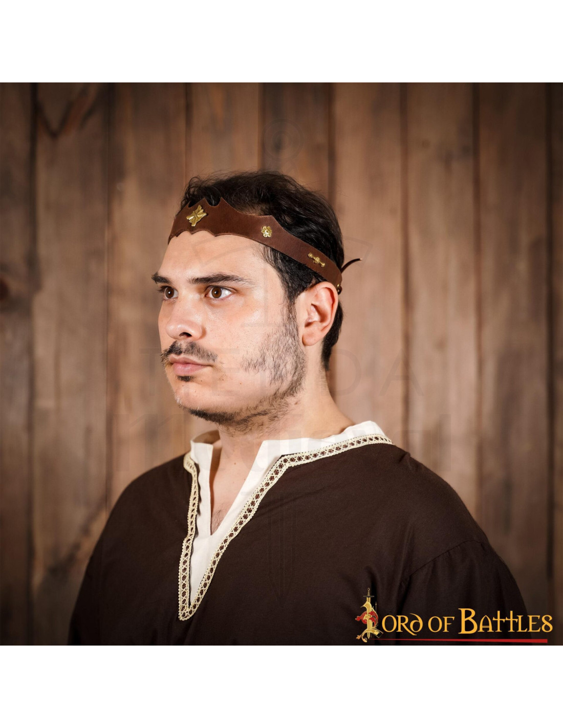 Ideal für alle, die das Leder- und Messingdiadem für fantastische Abenteuer kaufen möchten und in Nachstellungen, Festivals oder kreativen Sitzungen auffallen möchten. Sein robuster und gleichzeitig eleganter Look erleichtert die Kombination mit Umhängen, Rüstungen oder gehobenem Look und hilft Ihnen, von Beginn an eine starke visuelle Geschichte zu erzählen.