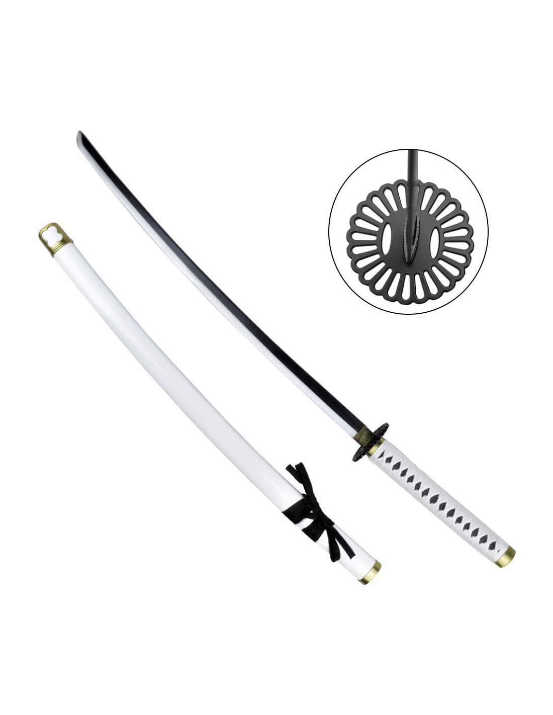 Sie werden nicht nur die Schönheit und Authentizität dieses Katana genießen können, sondern auch von seinen technischen Eigenschaften profitieren. Mit einer Gesamtlänge von 103 cm (einschließlich Scheide) und einem Gewicht von 900 g (mit Scheide) eignet sich dieses Katana perfekt für die Präsentation in Ihrer Sammlung oder für den Einsatz bei Cosplay-Events.