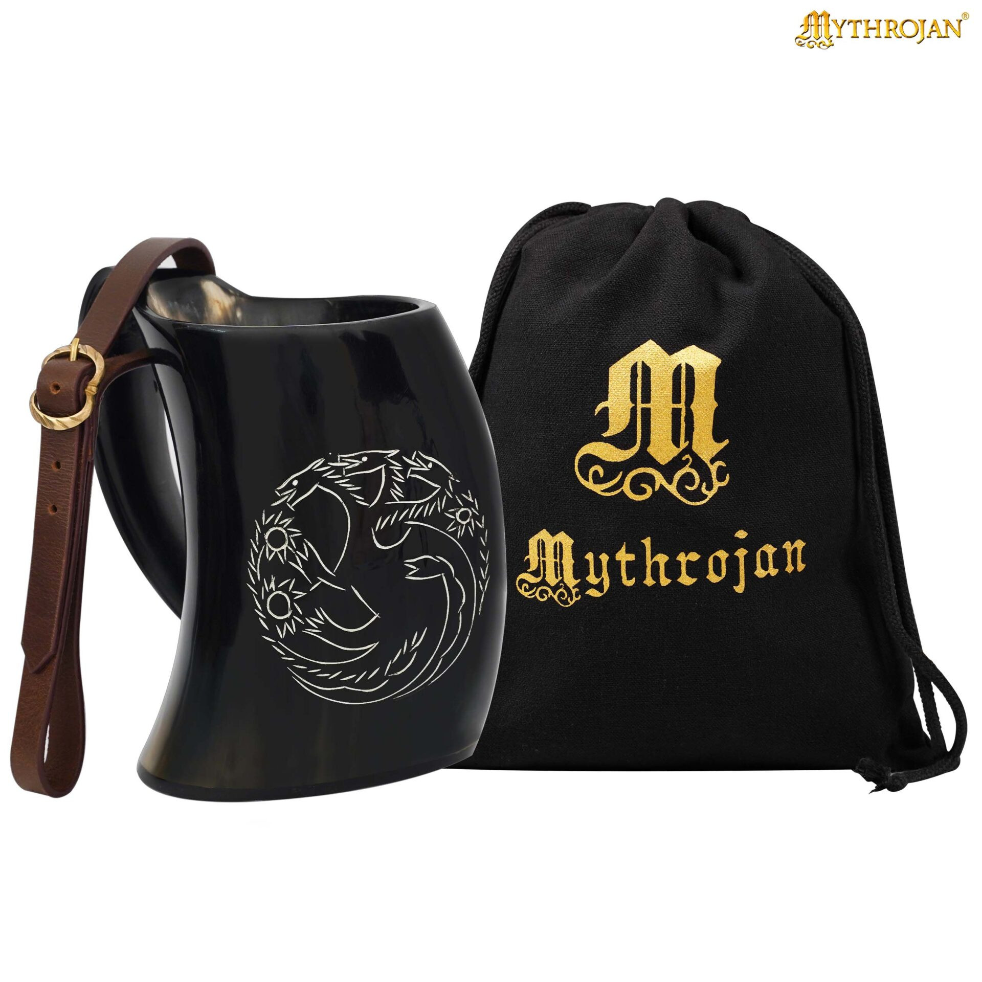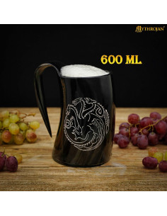 Keltenkreuzkrug aus Hornhorn mit Riemen (600 ml.)