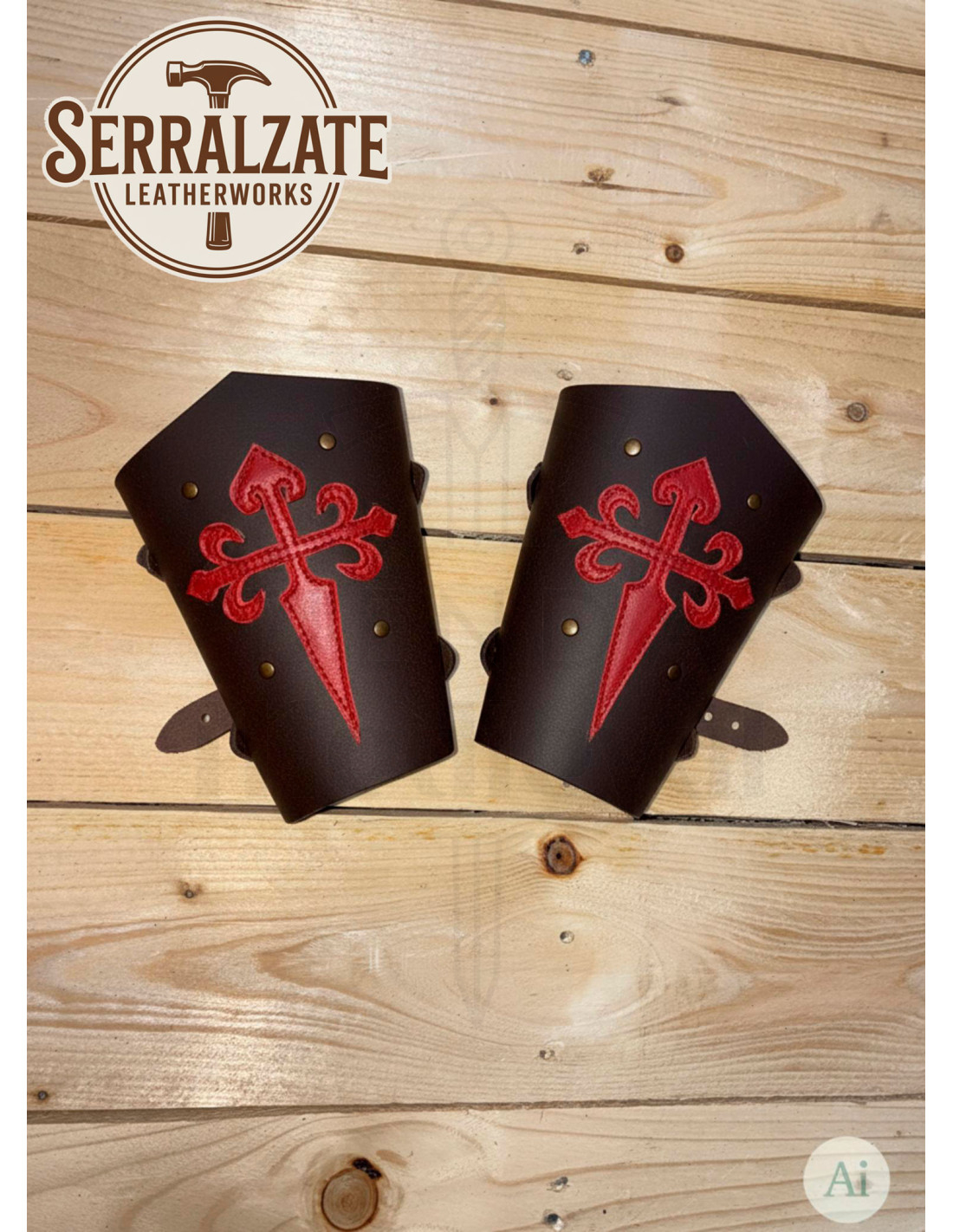 Suchen Sie nach einem Accessoire, das Authentizität und mittelalterlichen Stil vereint? Dieses Lederarmband mit dem ikonischen Kreuz von Santiago in Braun ist perfekt, um Ihre Präsenz bei historischen Nachstellungen, mittelalterlichen Märkten oder Live-Rollenspielen und LARP-Events zu verstärken. Gefertigt aus hochwertigem Rindsleder bietet es eine weiche, strapazierfähige Textur mit einem makellosen Finish, dank unserer sorgfältigen Auswahl- und Verarbeitungsprozesse. Das Kreuz, sorgfältig aufgenäht, verleiht einen markanten und symbolträchtigen Akzent, ideal für alle, die die Kultur und Geschichte der Templer bewundern.