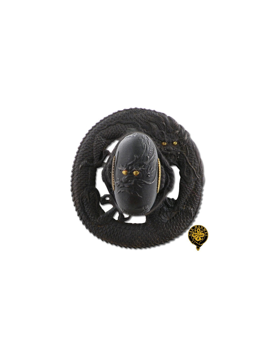 Eines der herausragendsten Merkmale dieses Katanas ist seine Tsuba, die mit einem beeindruckenden Drachen mit goldenen Augen verziert ist. Diese Verzierung verleiht ihm ein einzigartiges und markantes Aussehen und macht es zu einem Sammlerstück, das nicht unbemerkt bleibt.