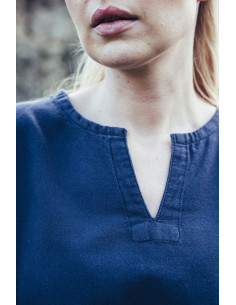Entdecken Sie den Charme und die Eleganz des Wikingerkleides Valdis aus Baumwolle in seiner nachtblauen Version. Dieses in Deutschland von der renommierten Marke Leonardo Carbone hergestellte Kleid besteht zu 100 % aus leichter Baumwolle, was einen außergewöhnlichen Tragekomfort garantiert. Seine geraden Ärmel verleihen ihm einen Hauch von Raffinesse und einzigartigen Stil.
