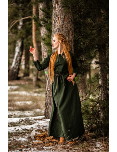Durch die lebendige grüne Farbtonierung wird dieses Kleid nicht nur dein idealer Begleiter bei verschiedenen Anlässen sein, sondern auch dir ermöglichen, dich mit der reichen Wikingertradition zu verbinden. Du kannst dich entscheiden, es solo zu tragen oder deine Figur mit einem stilvollen Gürtel zu betonen, um einen Look zu kreieren, der deine einzigartige Persönlichkeit widerspiegelt.