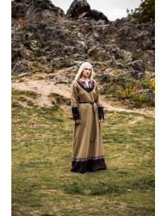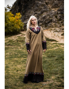 Vikingerkleid für Frauen Modell Idun mit Stickereien, beige
