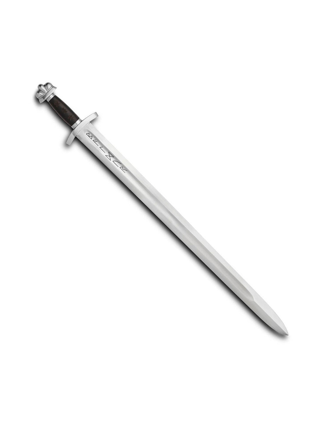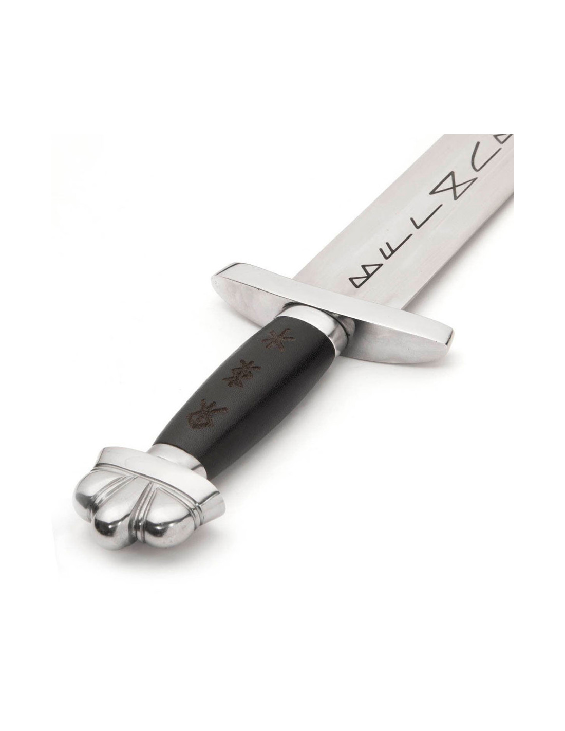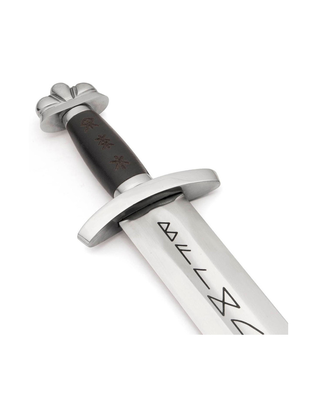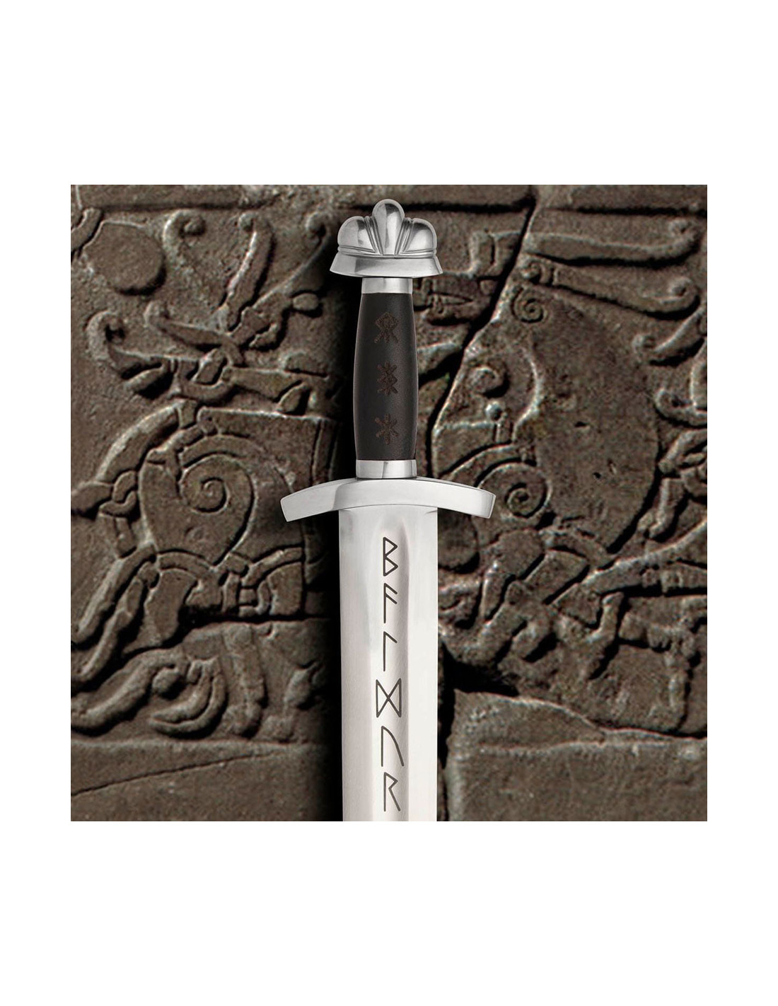 Zu Ehren weniger bekannter Brüder auf der ganzen Welt haben wir dieses klassische Wikingerschwert als Hommage an Asgards schönstes Mitglied entworfen. Der Ledergriff dieses Schwertes ist mit den drei Runen lasergraviert, die unserer Meinung nach am besten zum nordischen Gott passen. Einige Gelehrte glauben, dass der Name Baldur mit „mutig“ übersetzt wird, weshalb die Rune des Mutes hinzugefügt wurde. In ihrem Versuch, Baldur vor Schaden zu bewahren, verlangte Frigg von allen Wesen, dass sie schwören, ihr niemals Schaden zuzufügen (außer der Mistel), daher wurde auch die Rune des Schutzes aufgenommen. Schließlich war Baldur auch dafür bekannt, immer auf den Kampf vorbereitet zu sein, weshalb die Rune der Stärke das Sortiment vervollständigt.