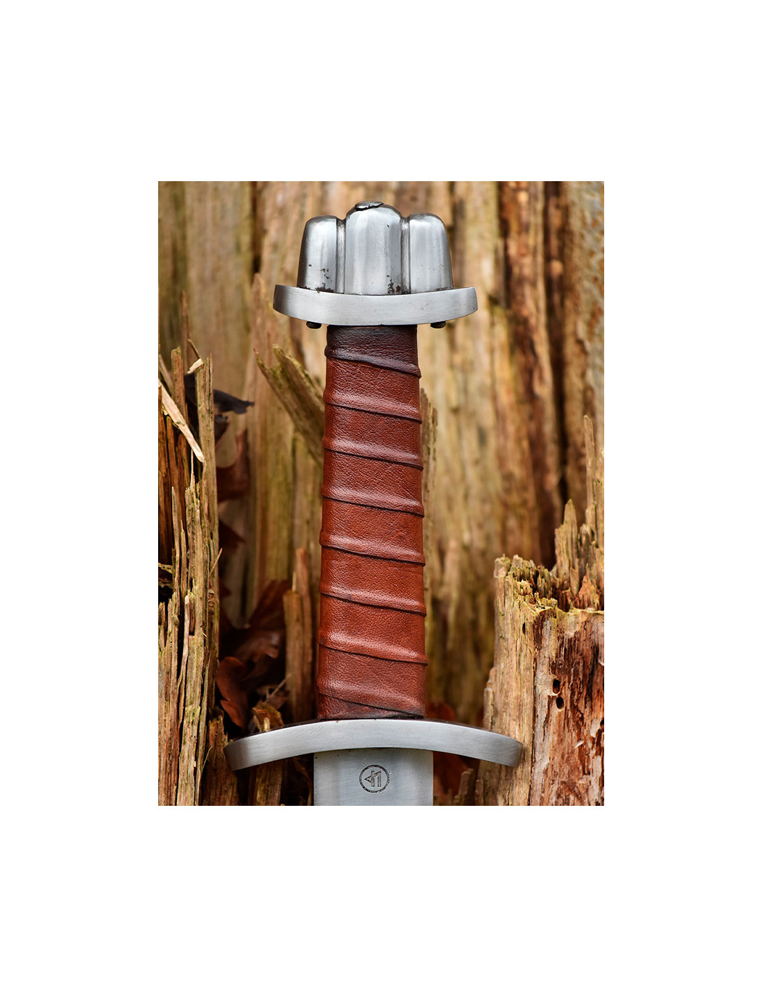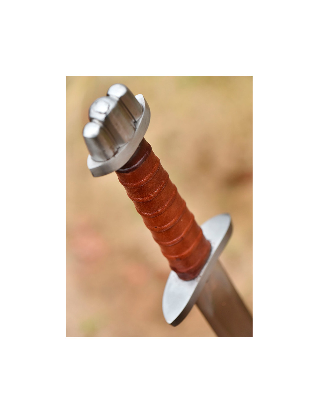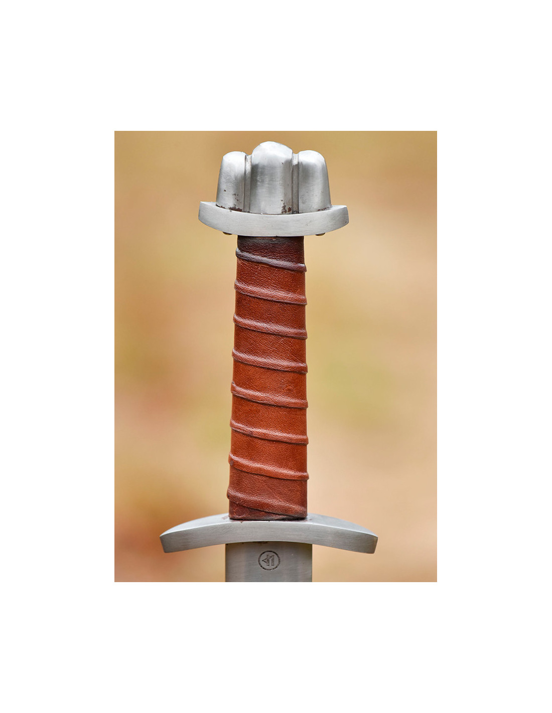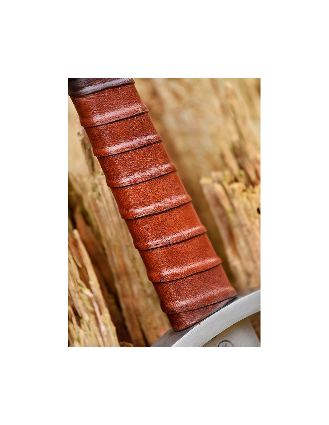 Um einen angenehmen und festen Halt zu gewährleisten, ist der Griff unseres Schwertes aus mit Leder überzogenem Holz gefertigt. Diese Materialkombination sorgt für ein angenehmes Tastgefühl und verhindert ein unerwünschtes Verrutschen im Kampf.
