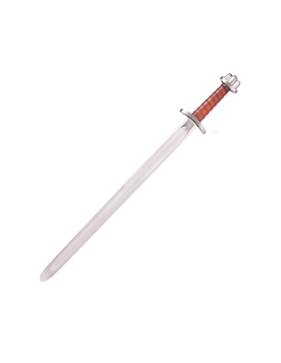 Mit einer Gesamtlänge von 93 cm und einer Klingenlänge von 74–74,5 cm bietet Ihnen unser langes Wikingerschwert die Authentizität, die Sie von einem Wikingerschwert erwarten. Sein Gewicht von 1170 Gramm und sein Schwerpunkt 15 cm vom Schutzbügel entfernt sorgen für eine perfekte Balance für agiles und präzises Handling.