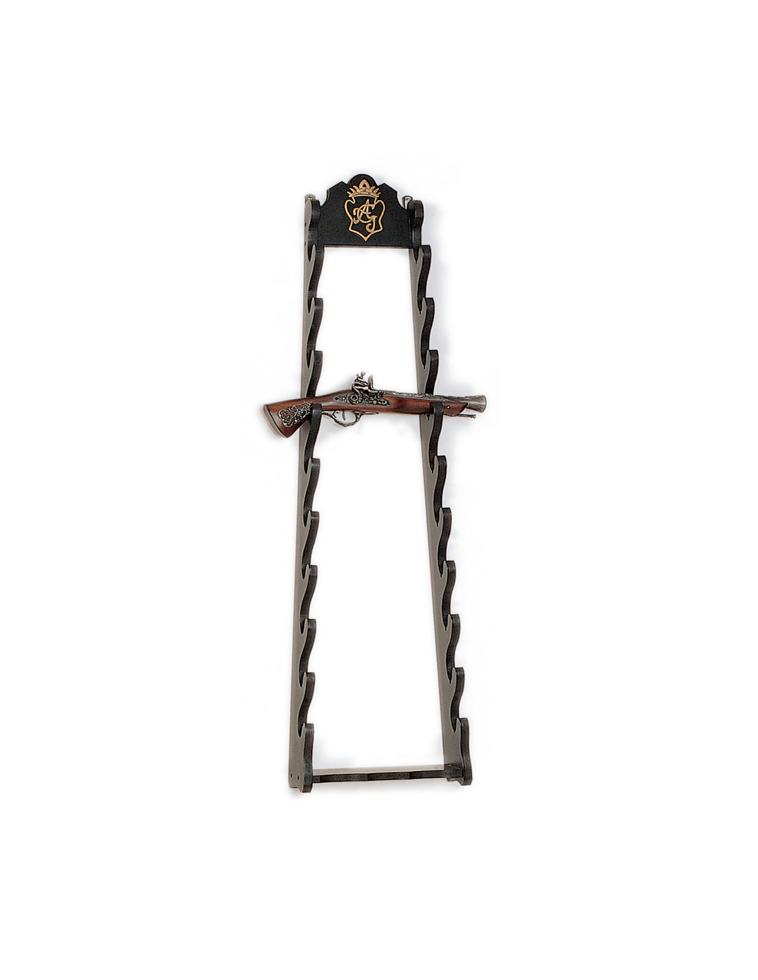 Mit einer Kapazität für bis zu 10 Pistolen oder Katanas ist dieses Display so konzipiert, dass es Ihnen maximale Flexibilität und Komfort bietet. Jede Halterung wurde sorgfältig entworfen, um Ihre Waffen zu schützen und Ihnen die Möglichkeit zu geben, ihre Schönheit aus jedem Blickwinkel zu genießen.
