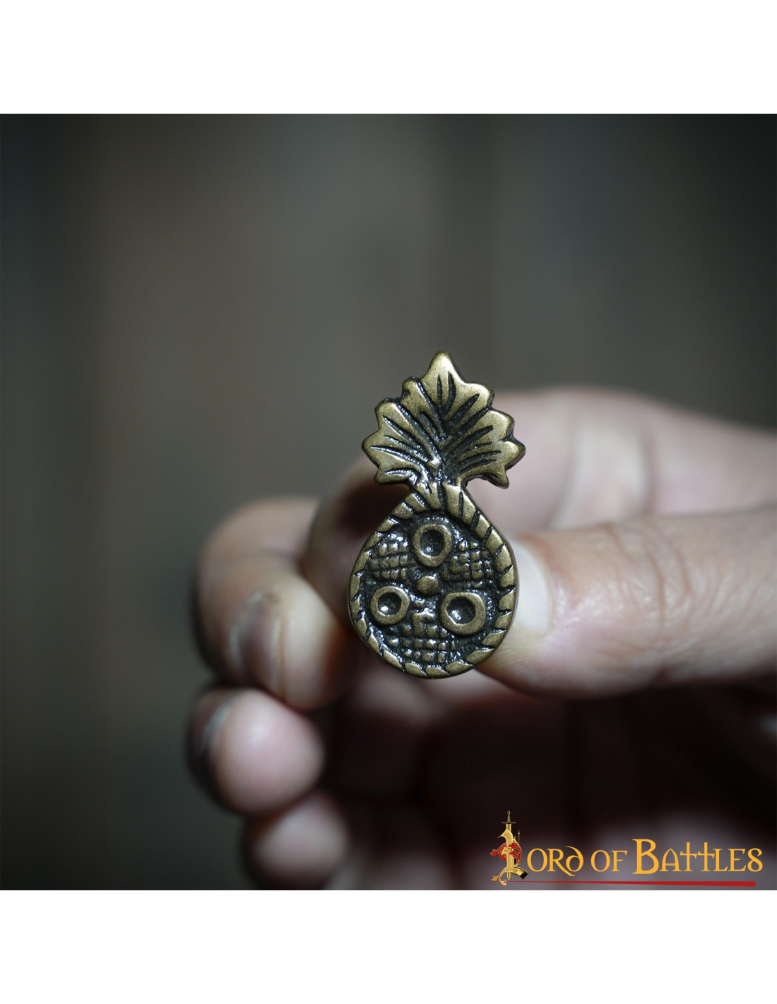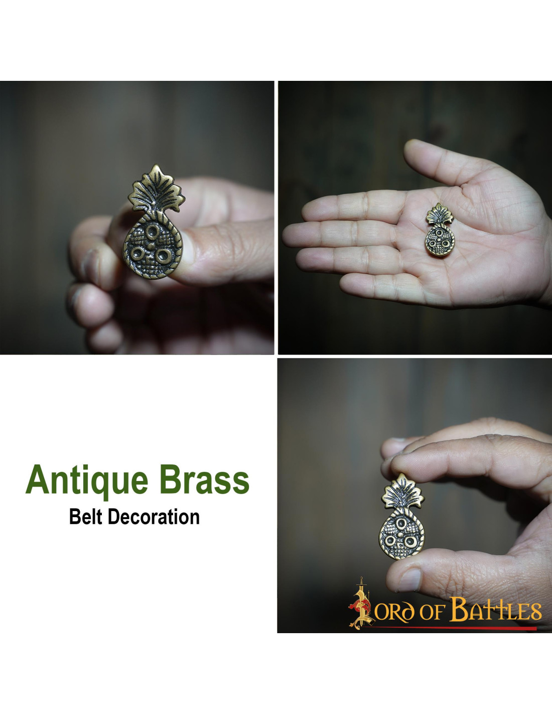 Verleihen Sie Ihrem Gürtel den fehlenden Touch mit dem Set aus 5 Ananas-Ornamenten aus antikem Messing für Medieval Elements! Möchten Sie Ihren Gürtel oder Ihre mittelalterliche Kleidung verschönern? Dann sind unsere antiken Messingornamente genau das Richtige für Sie. Lassen Sie mich Ihnen diese authentischen Juwelen aus der Zeit vorstellen, die Ihr Outfit in etwas wirklich Großartiges verwandeln: