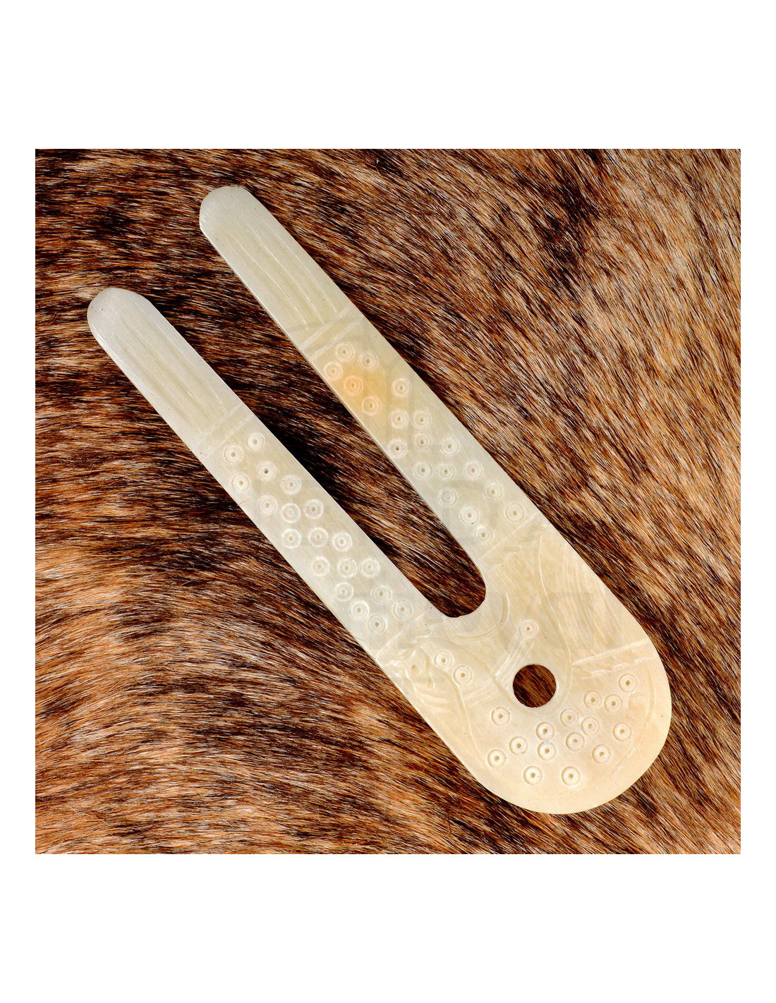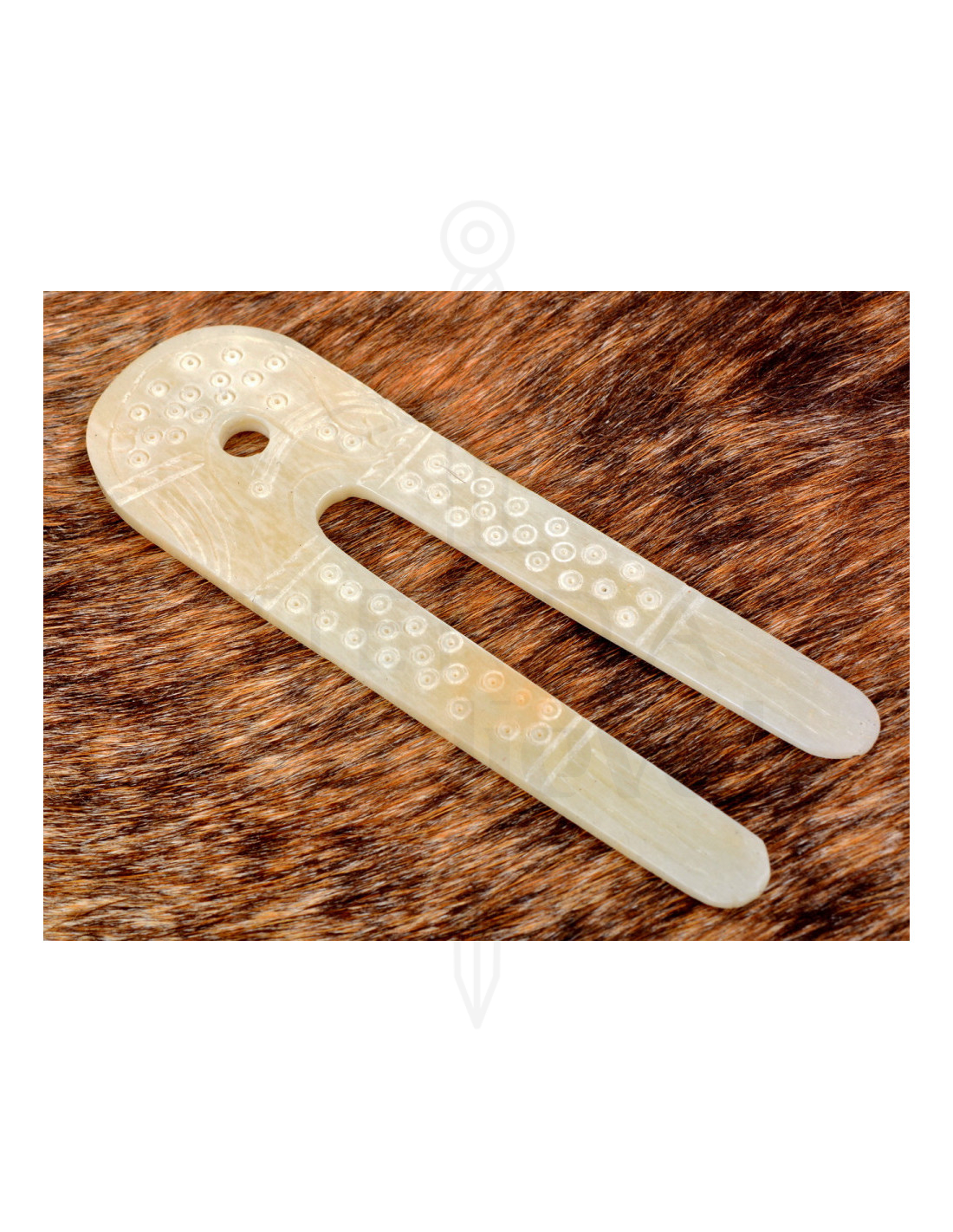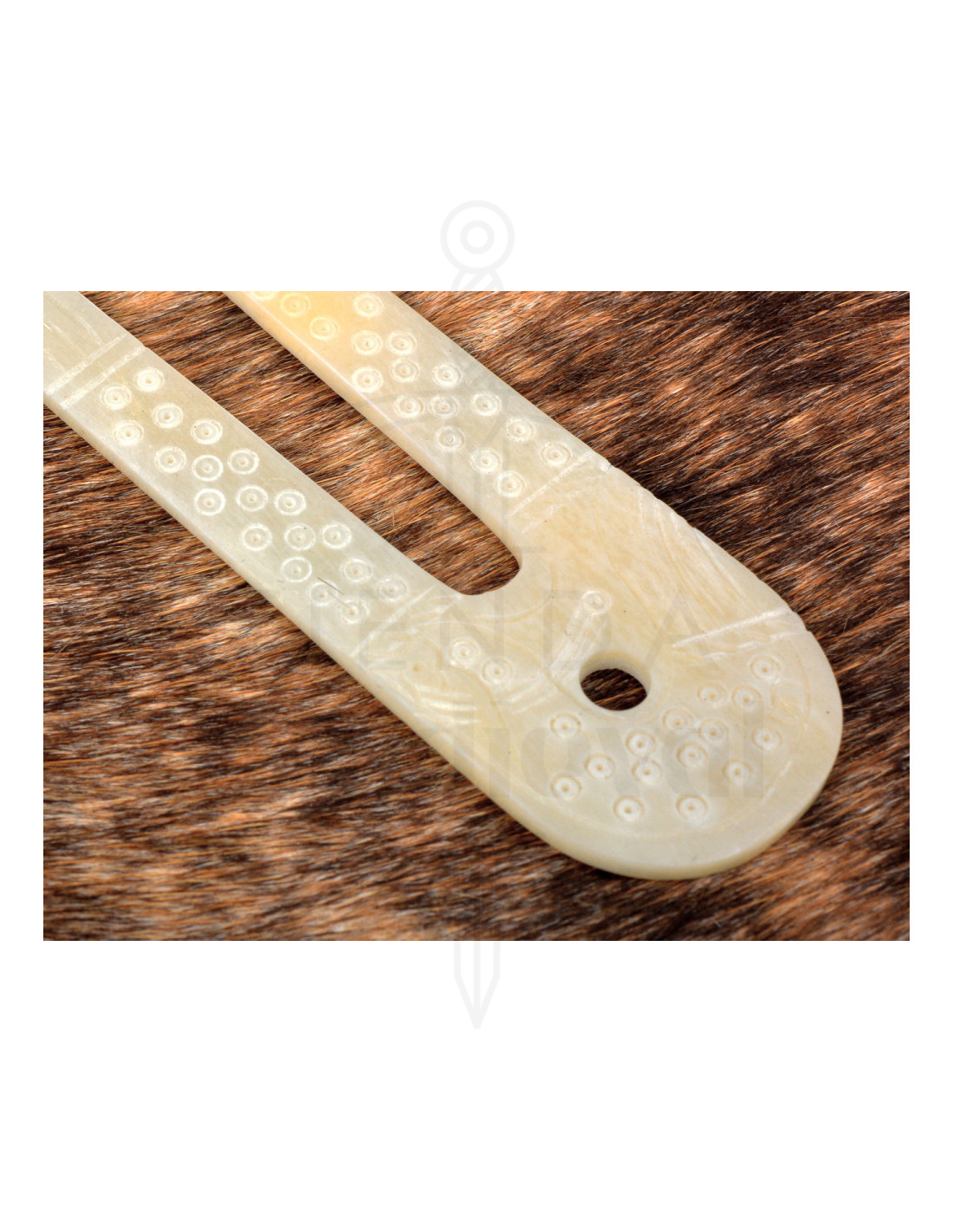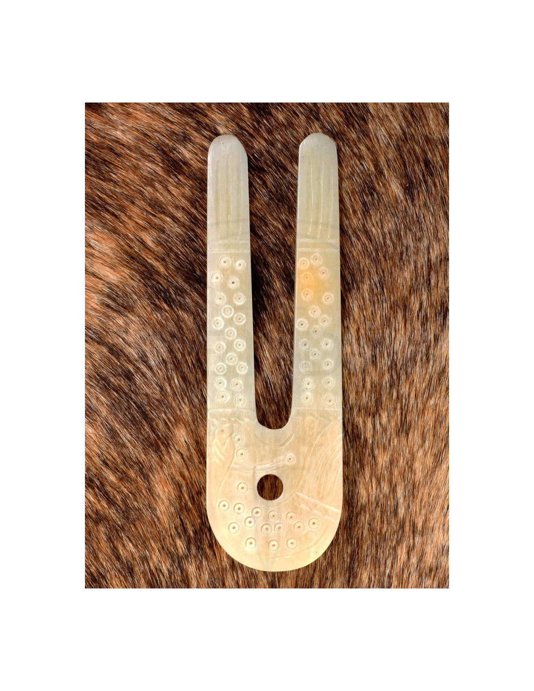 Mit den Maßen 10 x 3,5 x 0,4 cm und einem Loch von 0,5 cm Durchmesser ist diese Nachbildung der ursprünglichen Wikingerlampe ein Juwel der Handwerkskunst. Obwohl das Original aus Walknochen bestand, ist unsere Version sorgfältig aus Rinderknochen gefertigt und bewahrt so die Authentizität und den Charme der Wikingerzeit.