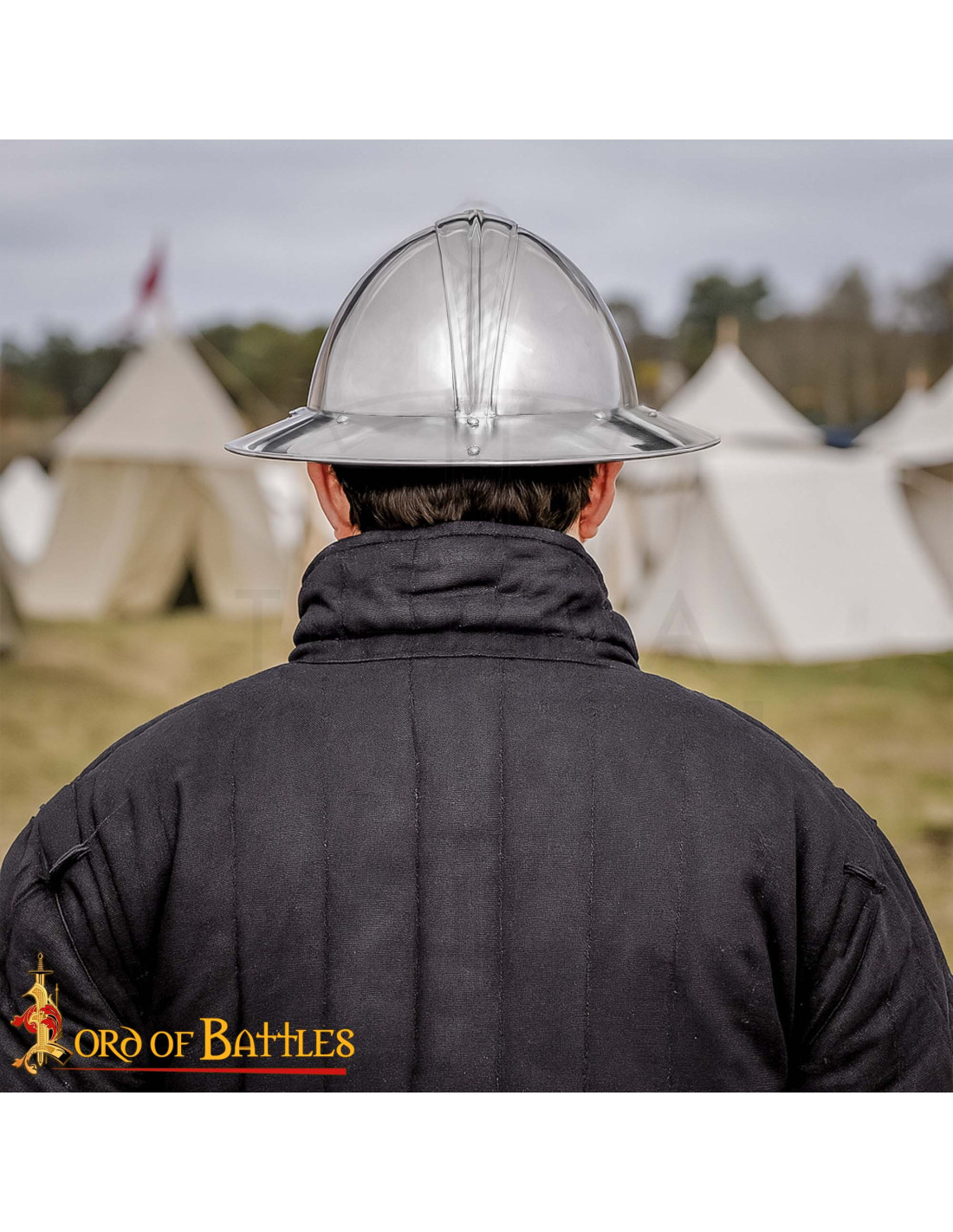 Der Kettle Hat, auch bekannt als 'Chapel de Fer' auf Französisch, ist ein mittelalterlicher Helm, der sich durch seine Vielseitigkeit und das Gleichgewicht zwischen Schutz und Beweglichkeit auszeichnet. Hier sind einige Höhepunkte des Kettle Hats: