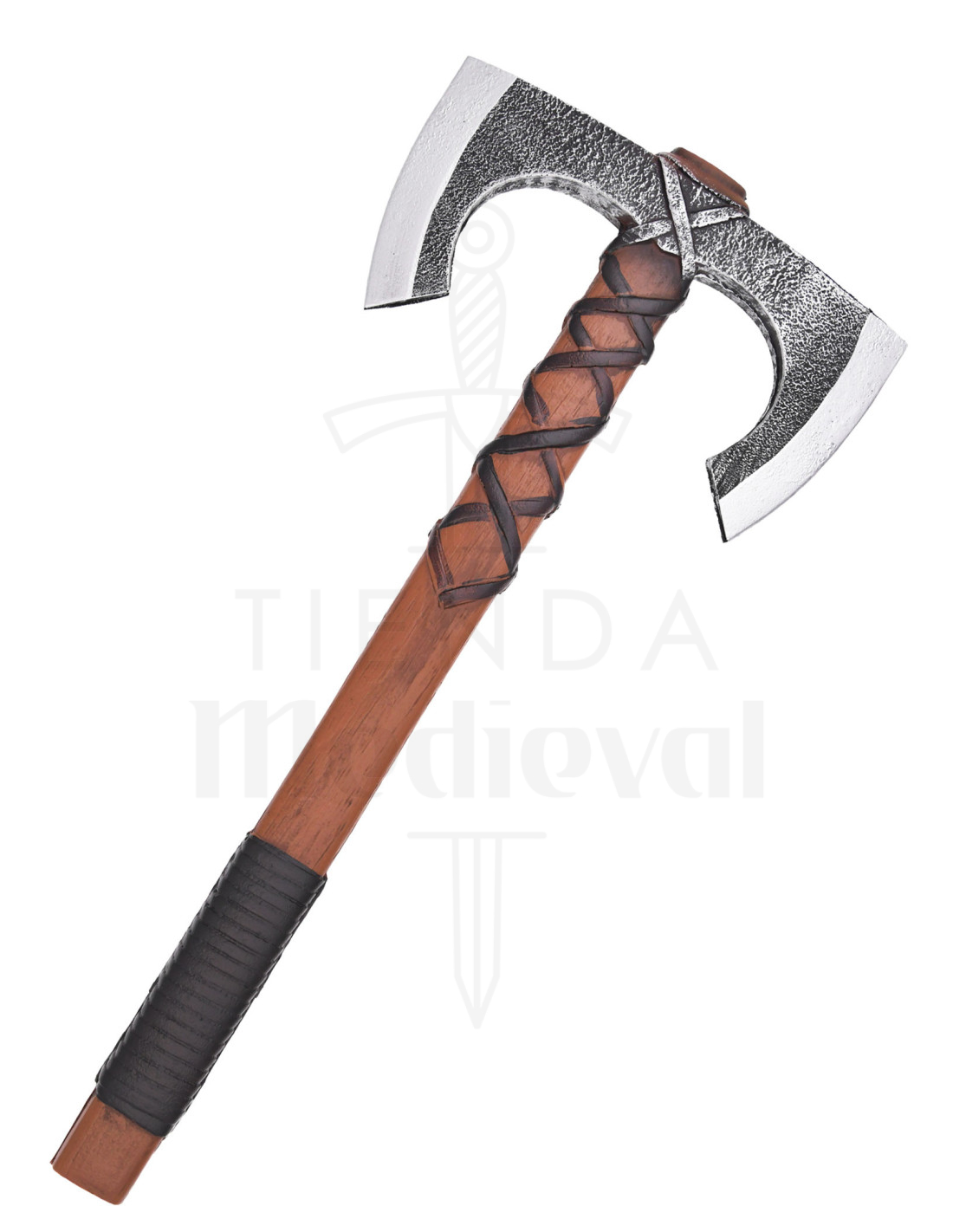 Jorvak ist nicht nur ein Accessoire; es ist ein Abenteuerbegleiter: seine rustikale Ästhetik und die subtilen Nutzungsdetails simulieren ein Leben voller Kämpfe, verstärken jeden Charakter, vom abgehärteten Söldner bis zur Schildmaid mit Entschlossenheit. Wenn Sie an der Doppelköpfigen Wikinger-Axt für LARP, Modell Jorvak interessiert sind, finden Sie sie entworfen, um sich nahtlos mit Kostümen und Szenen zu integrieren, ohne an Glaubwürdigkeit zu verlieren.