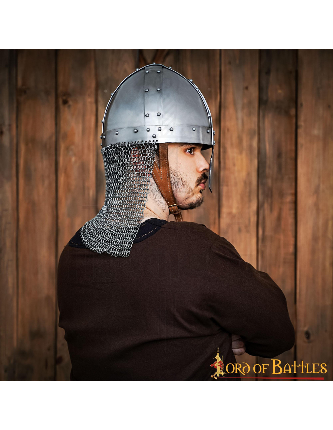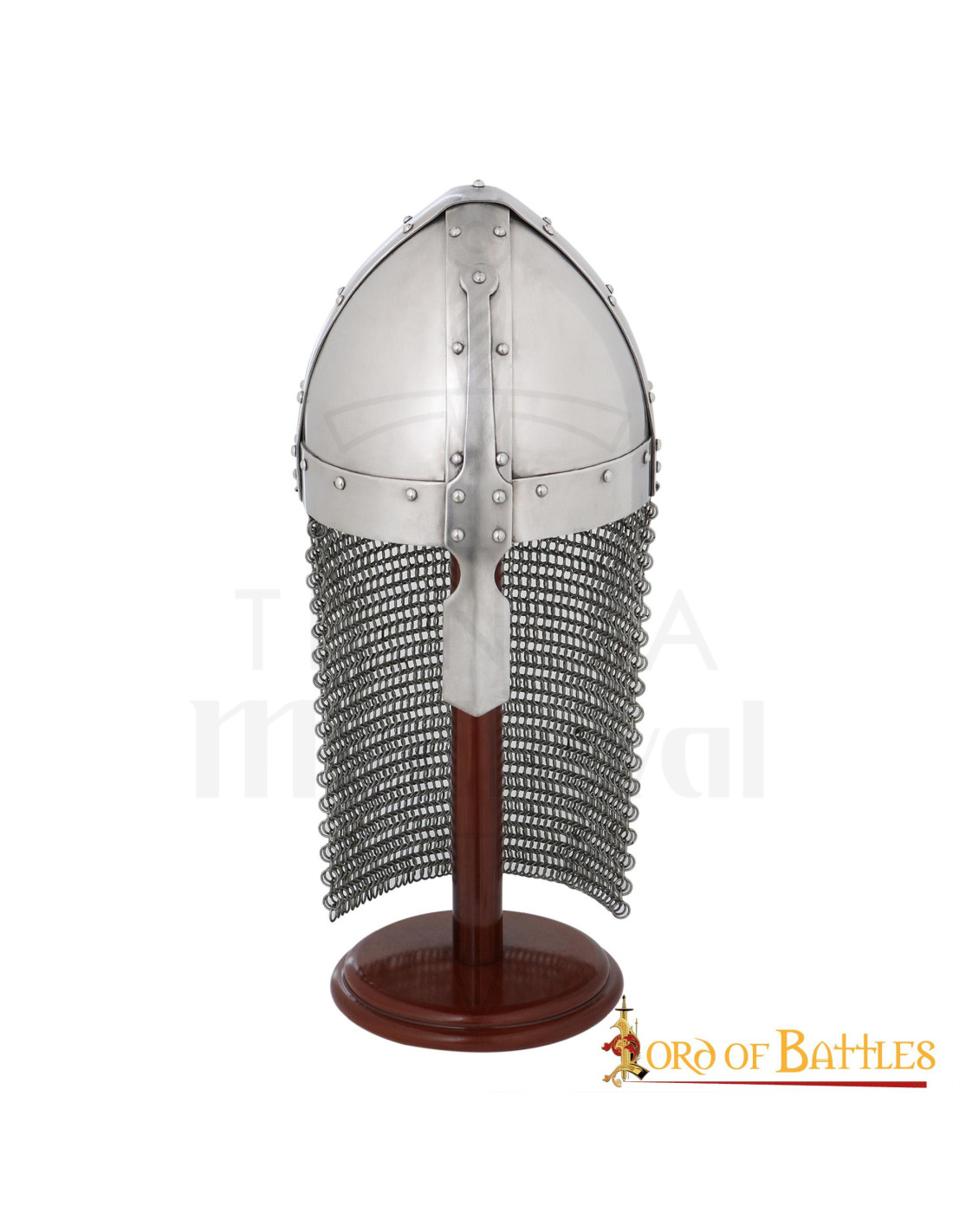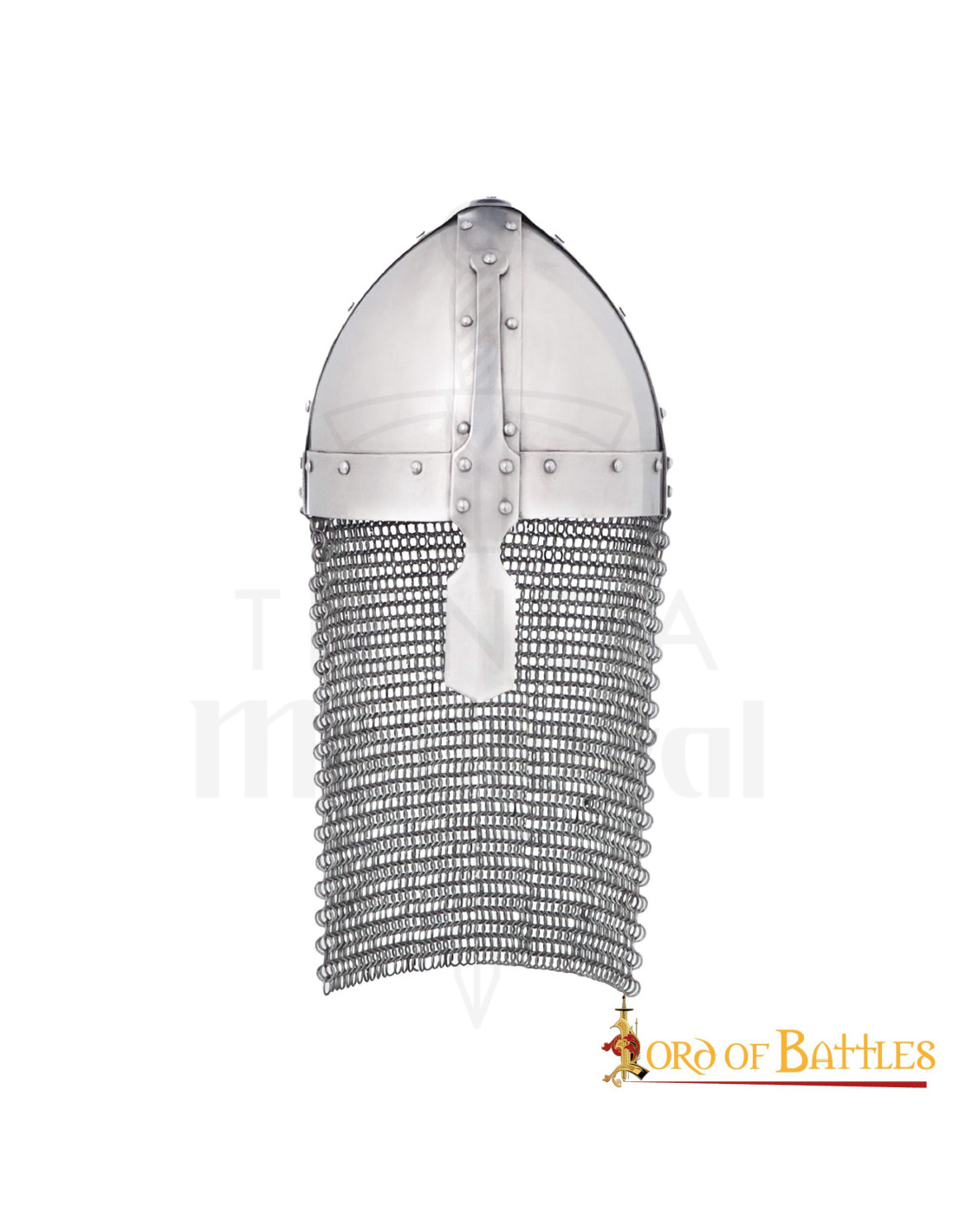 Wenn Sie in die mittelalterliche Welt eintauchen und wie ein echter normannischer Krieger aussehen möchten, ist dieser Helm der Schlüssel. Machen Sie einen Unterschied in Ihren Schlachten und Themenveranstaltungen mit der Qualität und dem Stil des normannischen Helms mit Nase und Kettenhemd der renommierten Marke Lord of Battles.