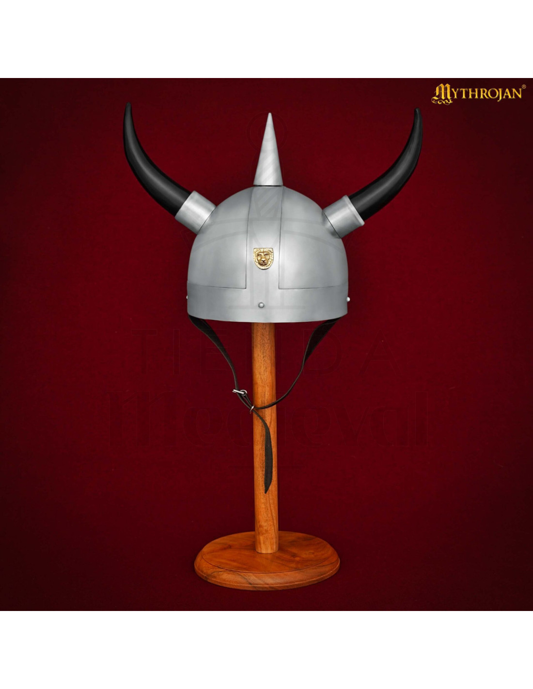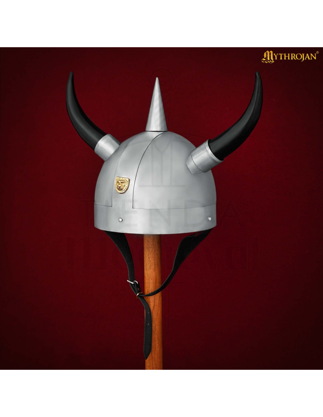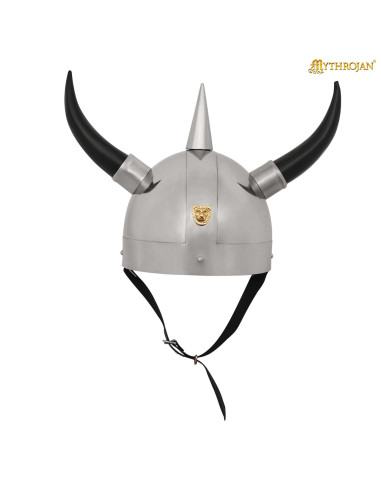 Mit dem Qualitätssiegel 'Mythrojan' ist dieser Wikingerhelm mit Hörnern und Löwen nicht nur eine Maske, sondern ein visuelles Erlebnis, das dich in legendäre Zeiten versetzt. Bist du bereit, deine Präsenz zu verstärken und jede Bühne mit einem traditionellen und kraftvollen Akzent zu erobern? Suche nach einem Wikingerhelm mit Hörnern und erwecke deine Figur oder Dekoration mit diesem einzigartigen Stück zum Leben.