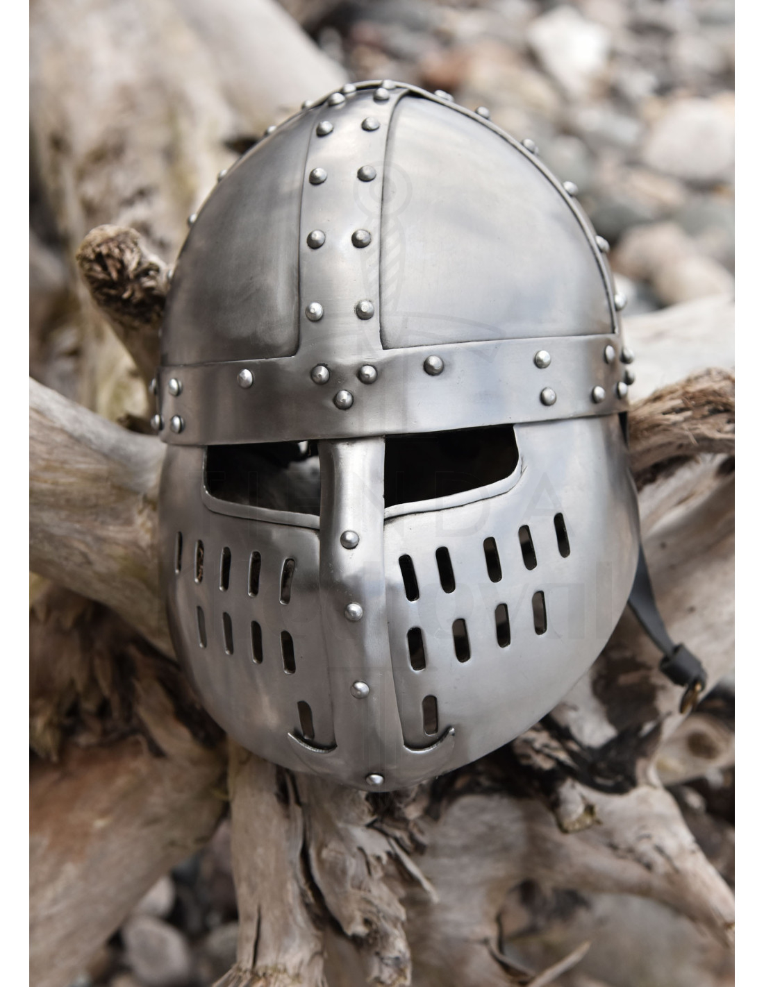 Verpassen Sie nicht die Gelegenheit, dieses faszinierende Stück Geschichte in die Hände zu bekommen. Sichern Sie sich jetzt den Norman Spangen Helm und tauchen Sie ein in die spannende Welt des Mittelalters!