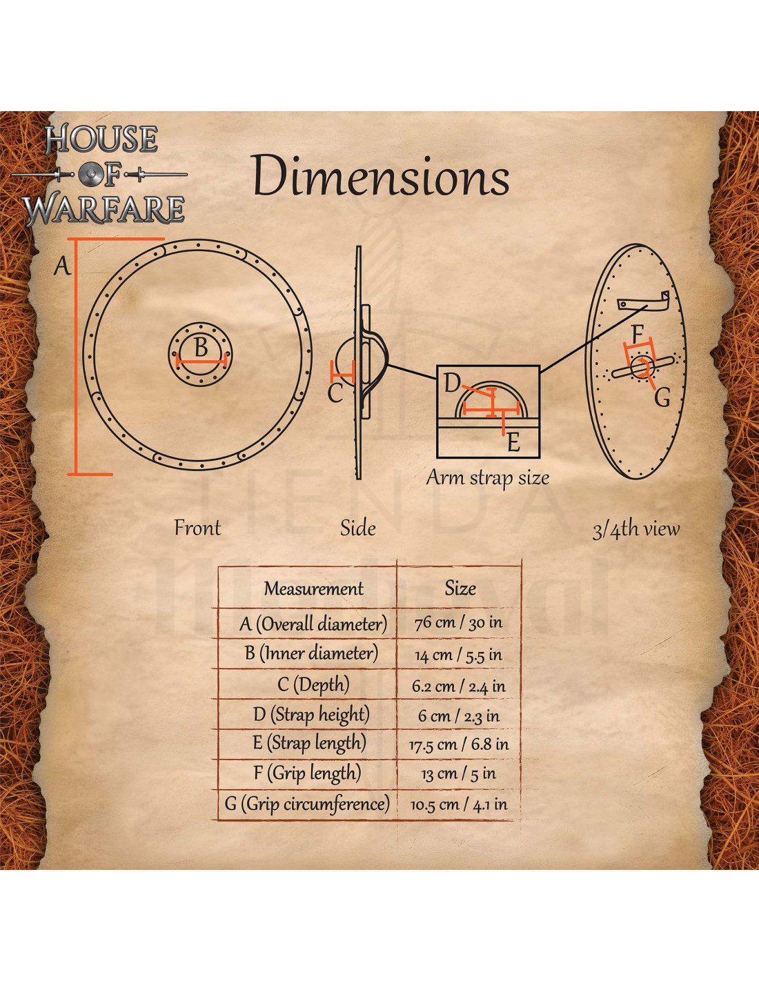 Für Sammler und Liebhaber der Wikingerkultur verbindet dieses Stück mit der Tradition der nordischen Krieger, die für ihre Kampfgeschicklichkeit und die Symbolik ihrer Schilde in defensiven Formationen und Zeremonien bekannt sind.