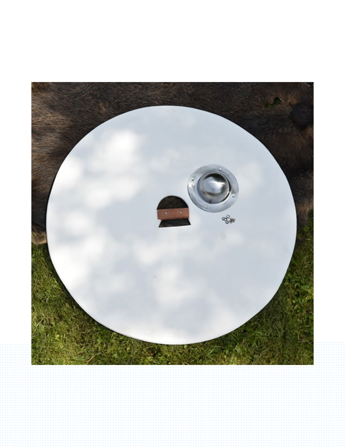 Mit einem großzügigen Durchmesser von 92 cm ist dieser aus widerstandsfähigem Sperrholz gefertigte Schild nicht nur ein dekoratives Stück; er ist so konzipiert, dass er hervorragenden Schutz und Langlebigkeit bietet. Seine Robustheit garantiert, dass du ihn bei historischen Nachstellungen, Ausstellungen oder einfach als beeindruckendes personalisiertes Sammlerstück verwenden kannst.