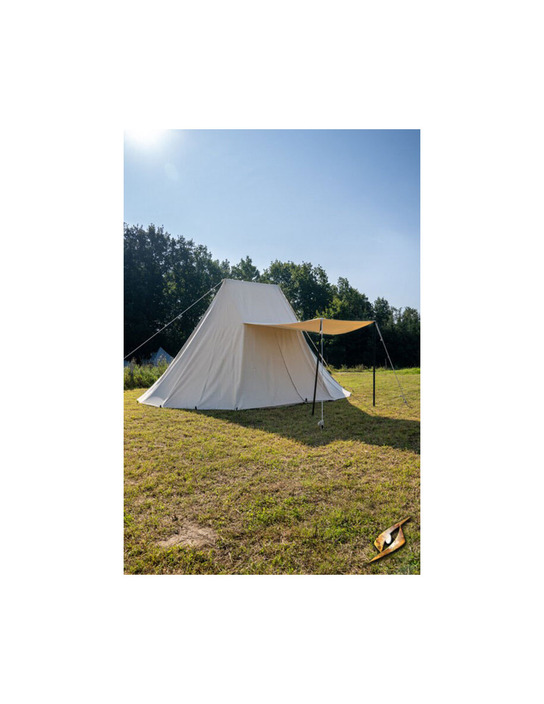 Aber das ist noch nicht alles, unser Doppelkeilzelt Epic Armoury zeichnet sich auch durch sein elegantes Design und die ungefärbte Farbe aus 100 % Baumwolle aus. Mit einem Gewicht von 35,45 kg, einer Höhe von 2,10 Metern und einer Länge von 7 Metern ist dieses Zelt geräumig genug, um Sie und Ihre engen Begleiter bei Ihren nächsten Abenteuern unterzubringen.