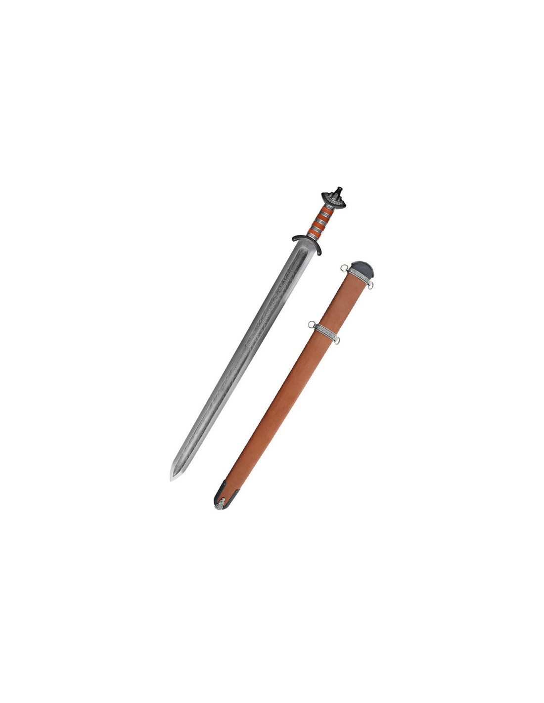 Das sächsische Schwert aus dem 9. Jahrhundert verfügt über einen mit Leder umwickelten Holzgriff, der im Kampf einen bequemen und sicheren Halt bietet. Darüber hinaus wird es mit einer passenden Scheide geliefert, wodurch es sicher und vor Witterungseinflüssen geschützt transportiert werden kann.
