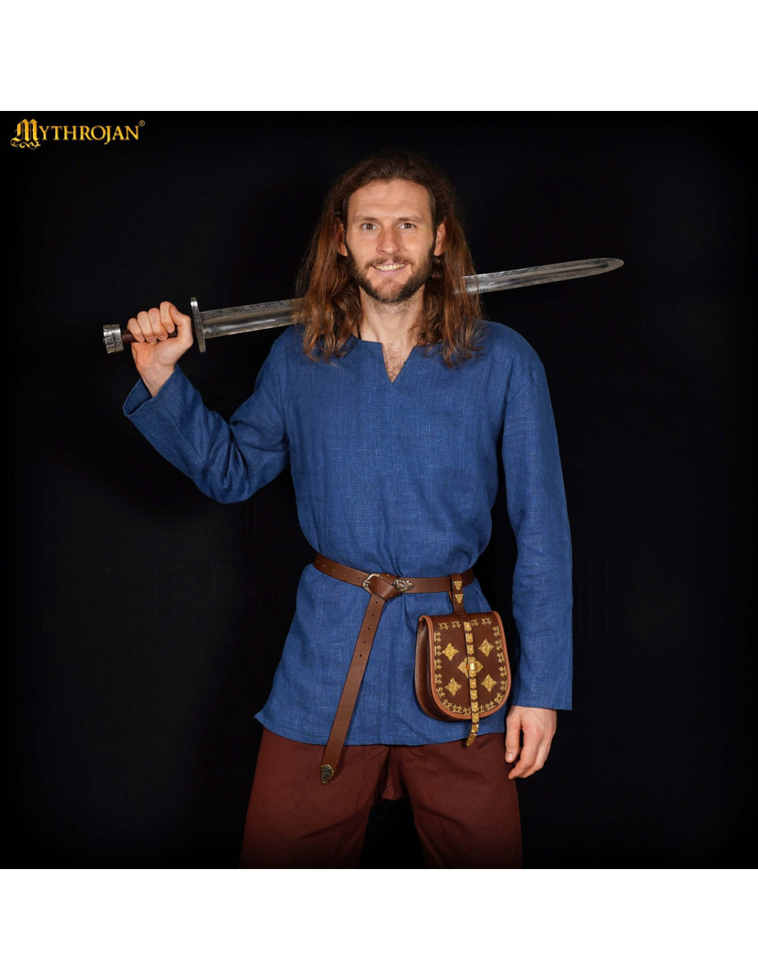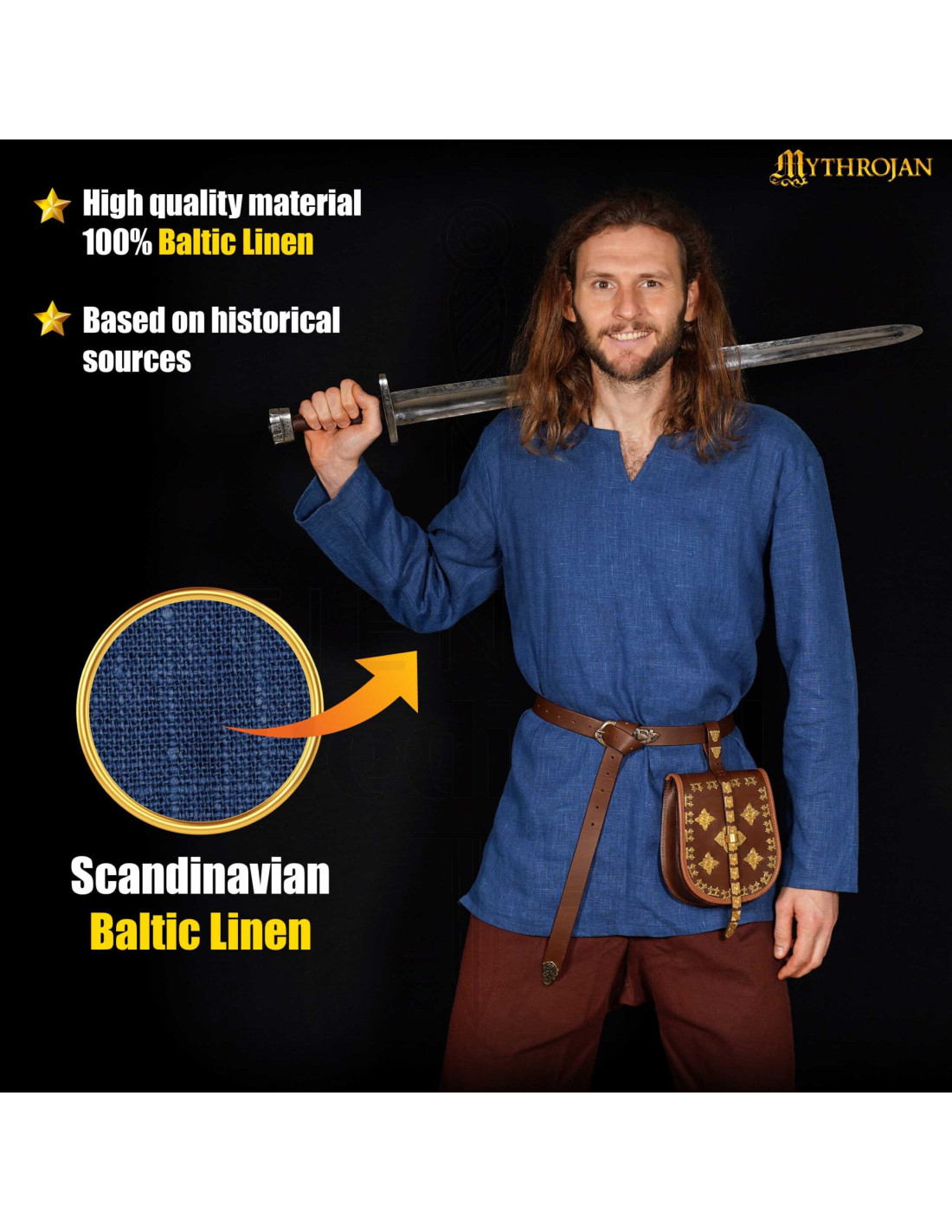 Suchen Sie das perfekte Kleidungsstück, um bei Ihren Abenteuern oder historischen Nachstellungen mit einem authentischen und bequemen Stil zu glänzen? Diese blaue Wikinger-Tunika aus Leinen ist Ihre beste Wahl, entworfen für diejenigen, die Qualität und Respekt vor den nordischen Wurzeln schätzen. Hergestellt aus 100% natürlichem baltischem Leinen, sorgt dieses hoch atmungsaktive Material dafür, dass Sie an heißen Tagen kühl bleiben – ideal für Sommerschlachten oder Outdoor-Nachmittage!
