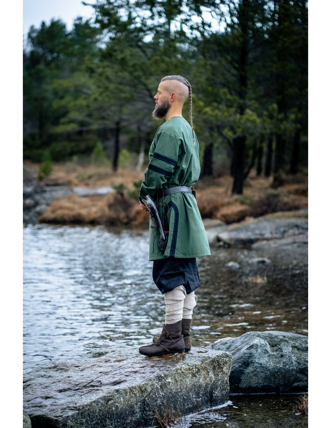 Stellen Sie sich vor, Sie kleiden sich mit der Essenz der nordischen Krieger und spüren jede Bewegung, begleitet von Komfort und Stil. Diese grüne Tunika lädt dazu ein, die Wikinger-Zeit mit schlichter Eleganz, aber voller Geschichte wieder aufleben zu lassen.