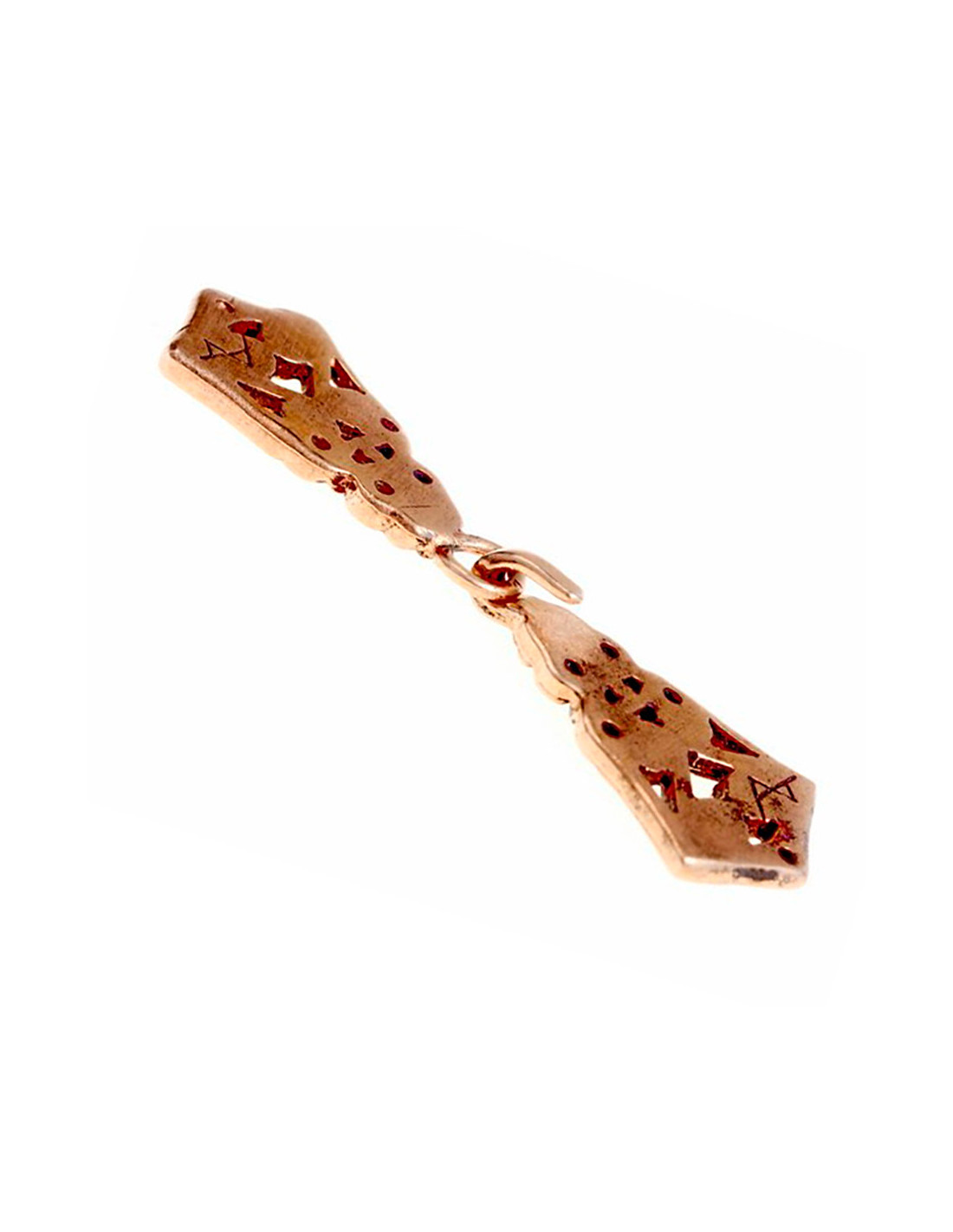 Dieser Verschluss ist aus hochwertigem Metall gefertigt und verfügt über eine wählbare Beschichtung in Bronze oder Silber. Mit seinem eleganten und raffinierten Design verleiht dieser Verschluss Ihren Kleidungsstücken eine besondere Note.
