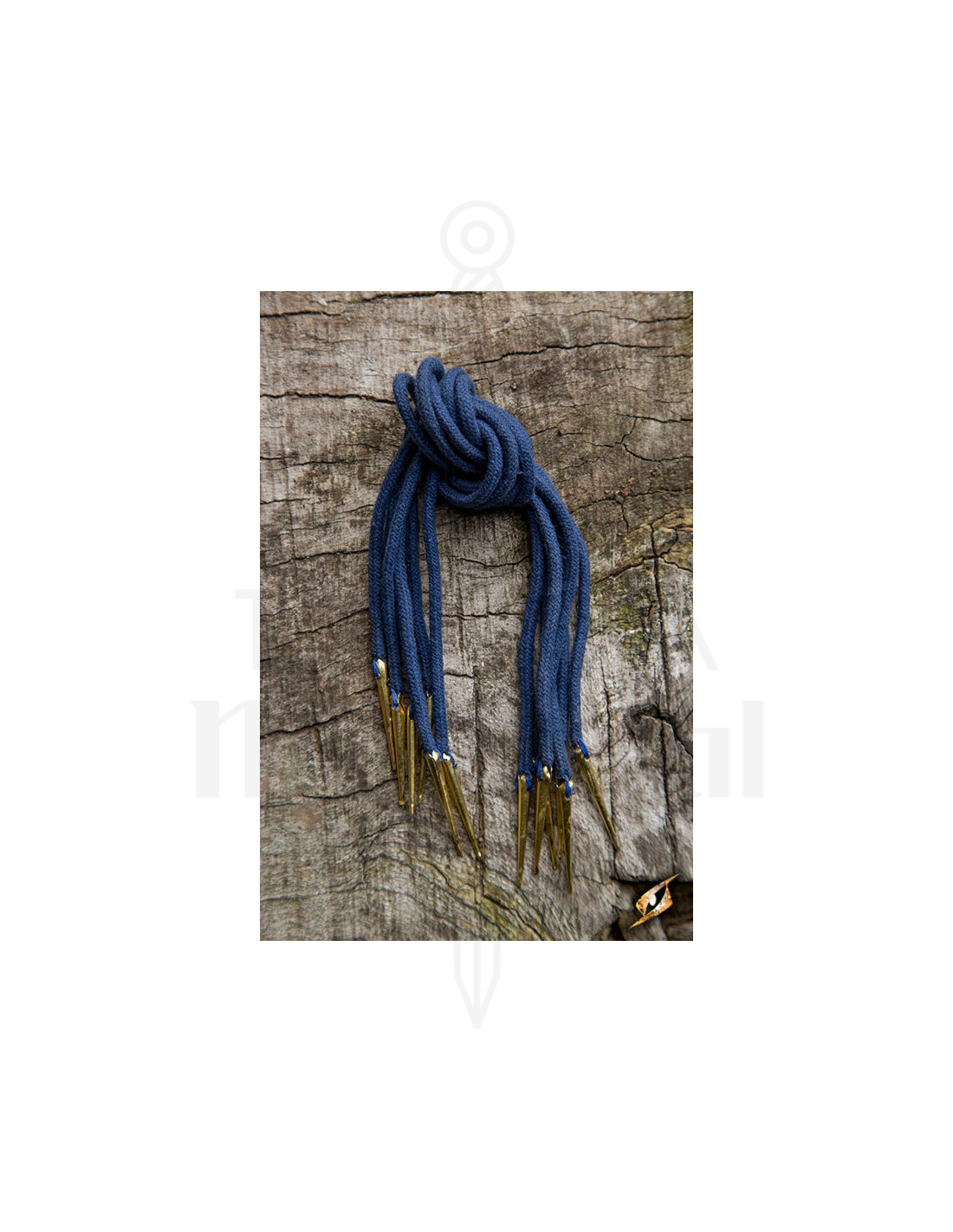Das Finish in Dunkelblau verleiht einen schlichten und vielseitigen Look, ideal um sowohl legere Kleidung als auch mittelalterliche Kostüme, Cosplay oder Handwerksarbeiten zu ergänzen. Außerdem verleiht das Design mit mehreren hängenden Schnüren und Knoten an der Oberseite einen rustikalen und authentischen Eindruck, perfekt zum Verzieren oder Verstärken Ihrer Kreationen.