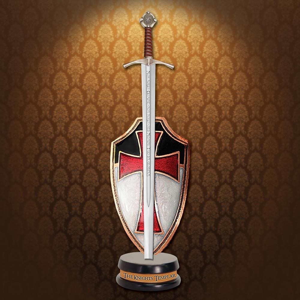 La espada abrecartas, con una longitud de 23 cm, está meticulosamente detallada para capturar la esencia de la valentía y el honor de los templarios. Además, el set incluye un atril con un mini-escudo esmaltado, decorado con el escudo de armas de los templarios en ambos lados. Esta característica única permite exhibir la pieza según tu preferencia, mostrando su belleza desde cualquier ángulo.