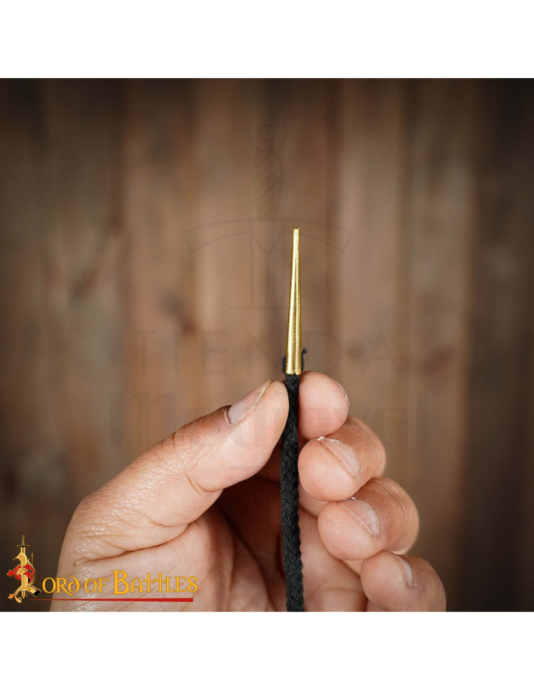 Diseñados para ofrecer mayor alcance y libertad a la hora de anudar, cada pieza permite envolturas y cruces que facilitan asegurar prendas ajustadas sin esfuerzo, ideal para calzar botas altas, cerrar laterales de túnicas o rematar corsés con un resultado pulcro. Comprar Set 5 herretes en algodón negro con puntas de latón te asegura la longitud y versatilidad necesarias para trabajos que requieren precisión y presencia.