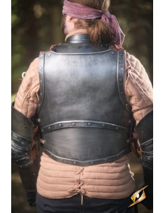 El peto Capitán cuenta con correas de cuero que garantizan un ajuste ceñido y cómodo, permitiéndote moverte con total libertad durante tus escaramuzas de guerra. Ya sea que participes en batallas épicas o en duelos intensos, este peto te brindará la protección necesaria sin comprometer tu movilidad.