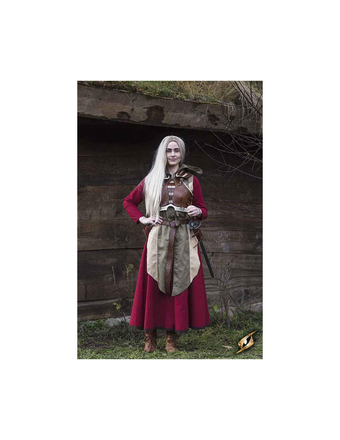 La armadura medieval de pícara talla M/L es una pieza única elaborada en cuero, diseñada para brindar protección y estilo a las mujeres guerreras. Confeccionada con cuero resistente de plena flor, esta coraza cubre el pecho, la clavícula y debajo de los brazos, brindando una apariencia favorecedora y peligrosa.