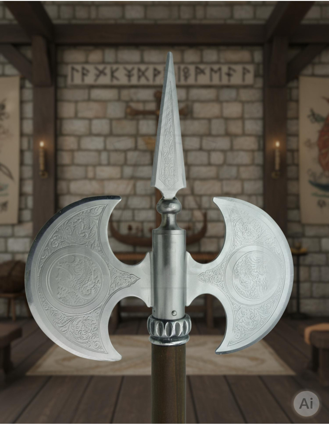 Por último, pero no menos importante, este hacha rústica doble pala grabada se fabrica en Toledo, España. Toledo es conocida por su tradición en la fabricación de armas y su artesanía de alta calidad. Esto garantiza que estás adquiriendo un producto auténtico y de confianza.