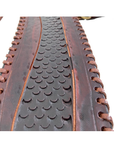 Fabricada en Toledo, España, por el reconocido artesano J.L.Rubio, esta daga combina tradición y precisión moderna. Su hoja de 36,5 cms en acero grabado no solo es resistente, sino que también proyecta un aura de poder y resistencia. La vaina de cuero, cuidadosamente diseñada, protege tu pieza y mantiene tu control en todo momento. Su tamaño y peso acompañan tu destreza, facilitando un manejo efectivo sin perder estilo. Mantenerla en condiciones óptimas es simple: lugares secos, lubricación periódica y disfrutarás de una pieza que demuestra que la preparación y la resiliencia están en tu ADN.