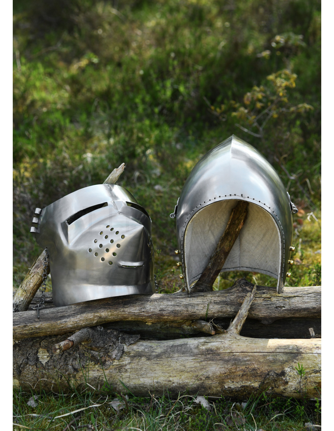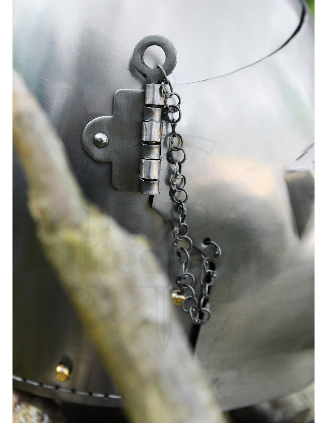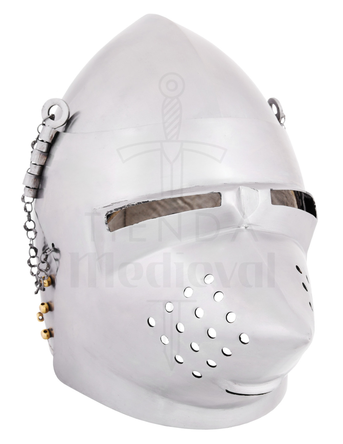 Si eres amante de la historia o participas en representaciones de la época, este casco es el complemento perfecto para transmitir ese carácter majestuoso y fiero de los caballeros europeos del siglo XIV en sus batallas y ceremonias.