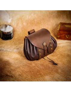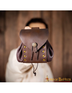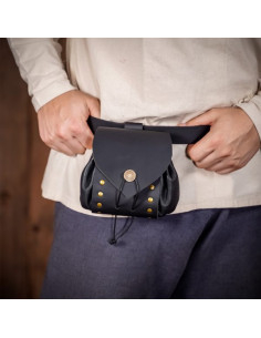 Riñonera medieval en cuero con botón latón envejecido