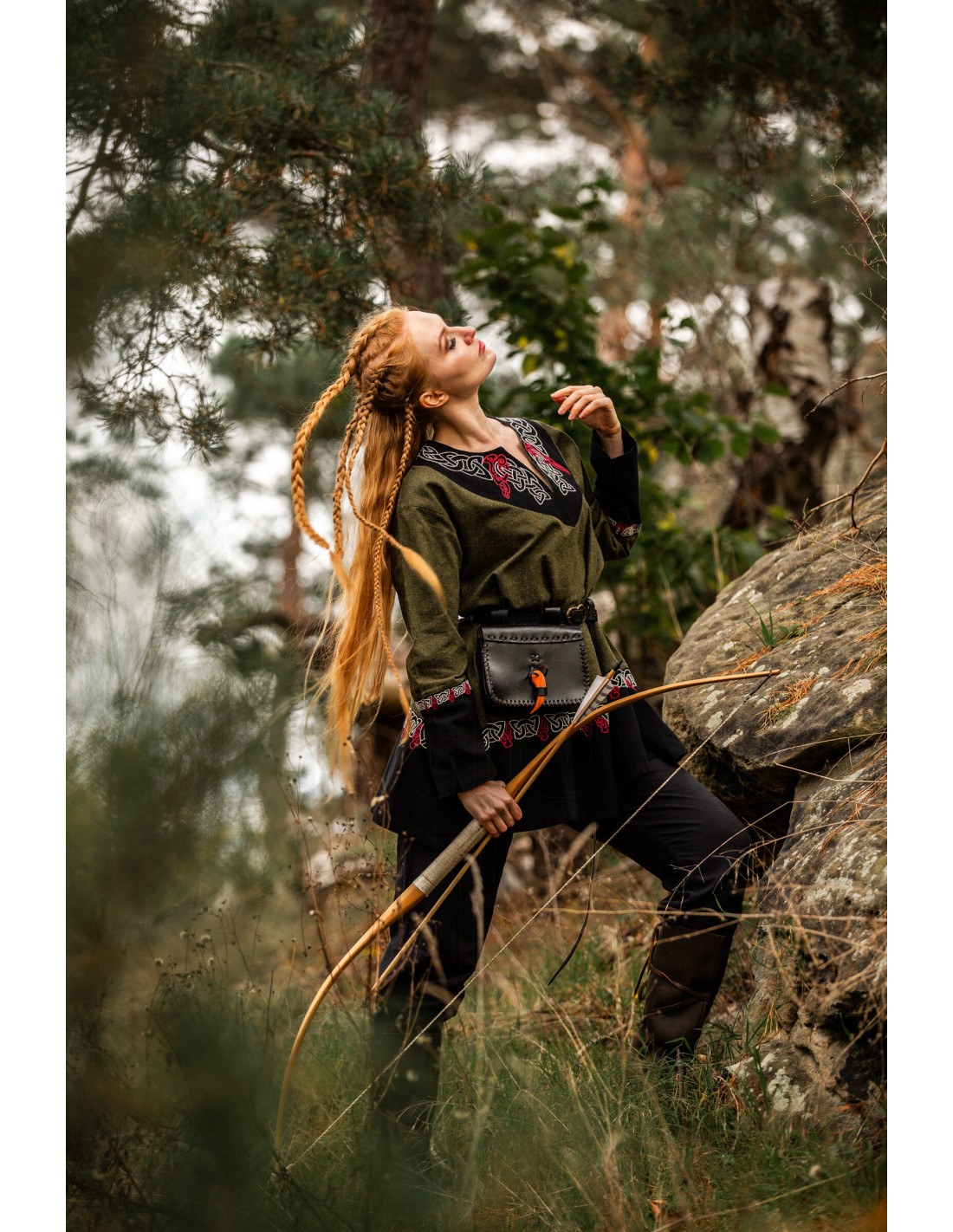 Inspirada en las bolsas tradicionales utilizadas por comerciantes y viajeros medievales, esta riñonera combina funcionalidad y diseño histórico en un solo accesorio. Perfecta para ferias, eventos temáticos o una salida casual con estilo, su característica de costuras visibles y detalles tradicionales hacen que resalte cada detalle.
