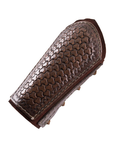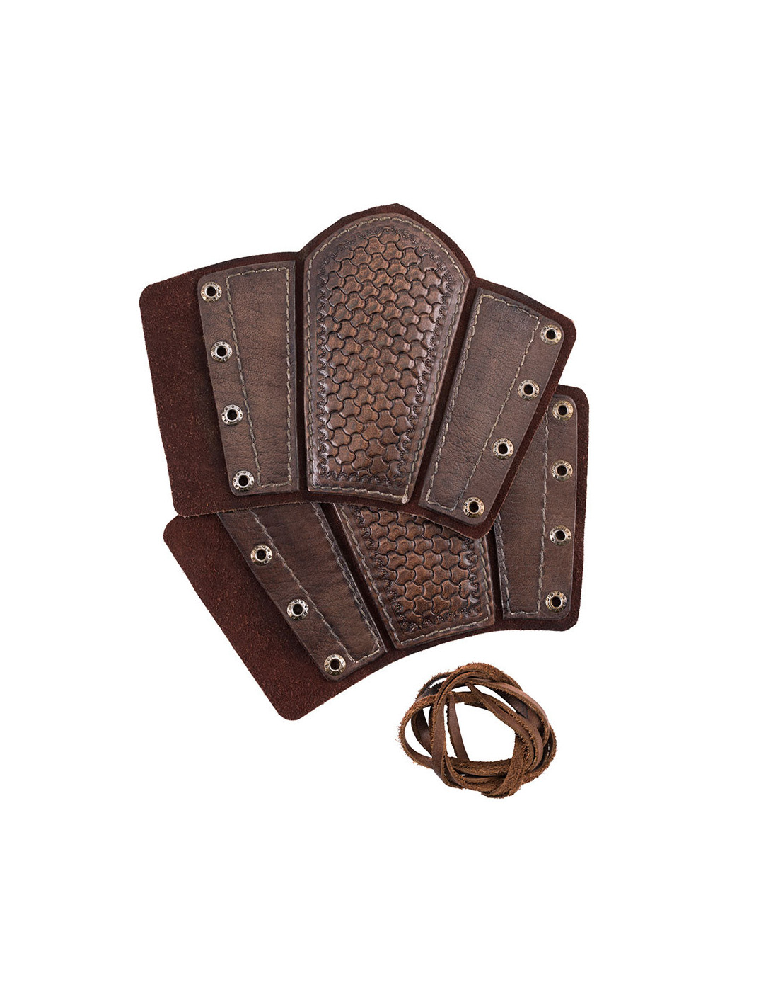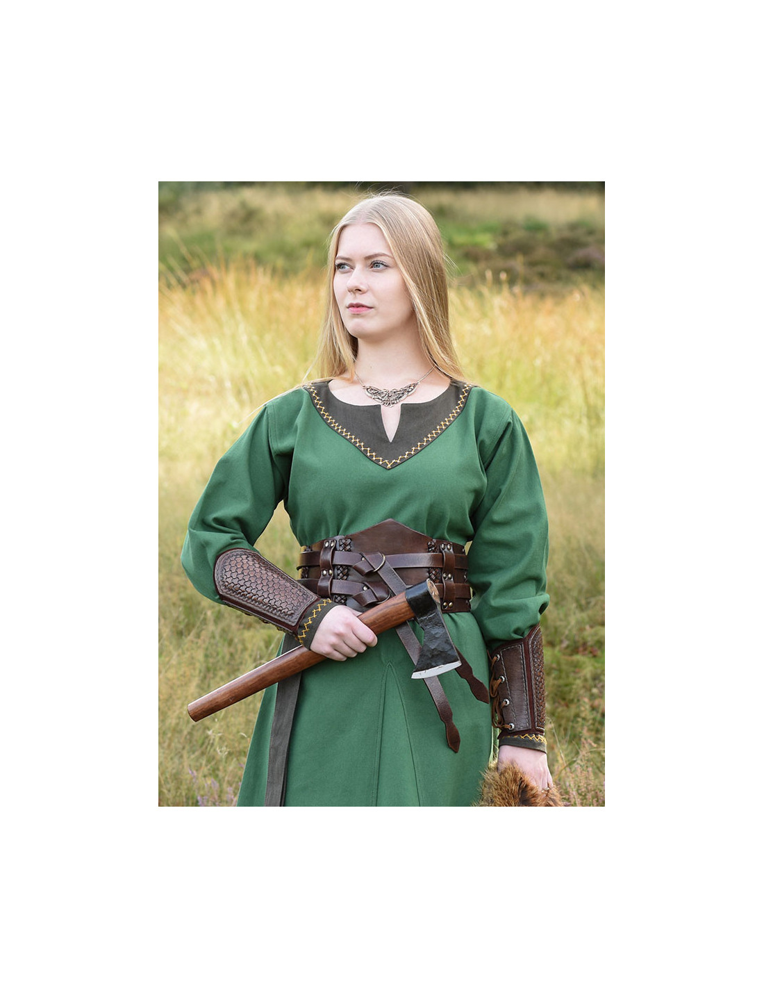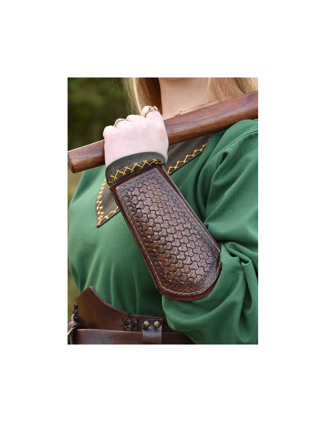 Los brazaletes Vikingos guerrero Njord de cuero de Búfalo son el accesorio perfecto para cualquier fanático de la cultura vikinga. Estos brazaletes están disponibles en negro y marrón, y están diseñados con ojales en metal reforzados para los cordones, lo que garantiza su durabilidad y resistencia.