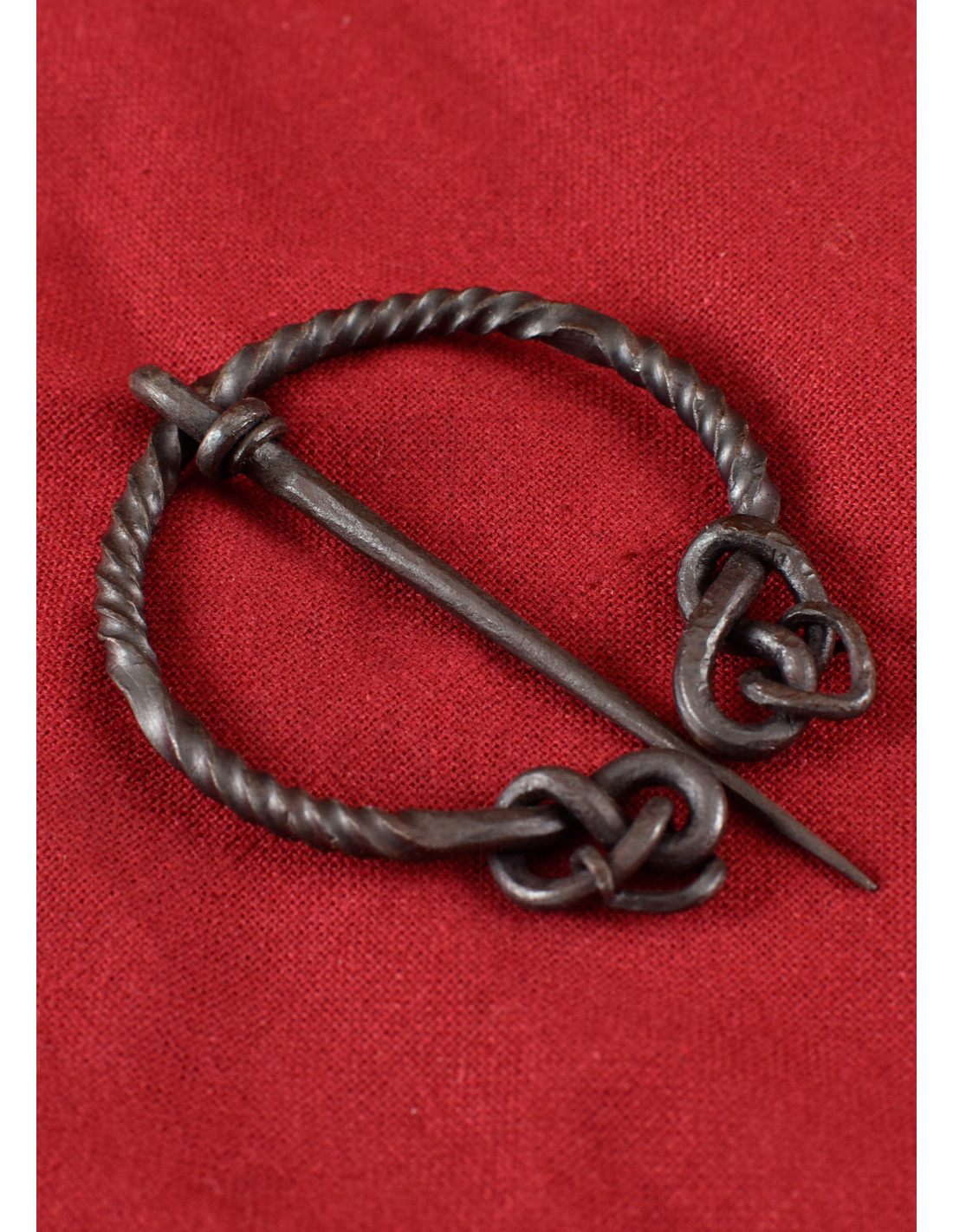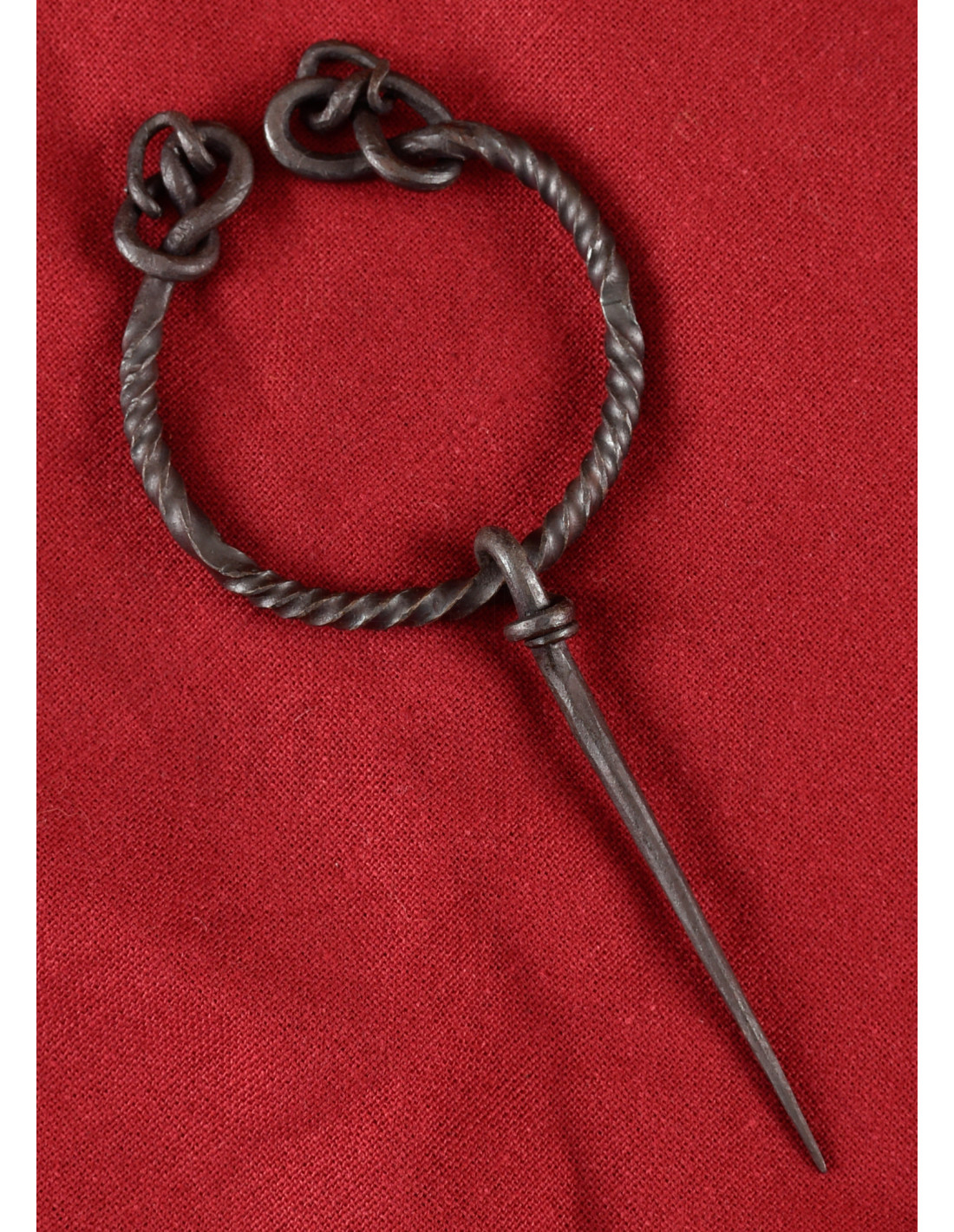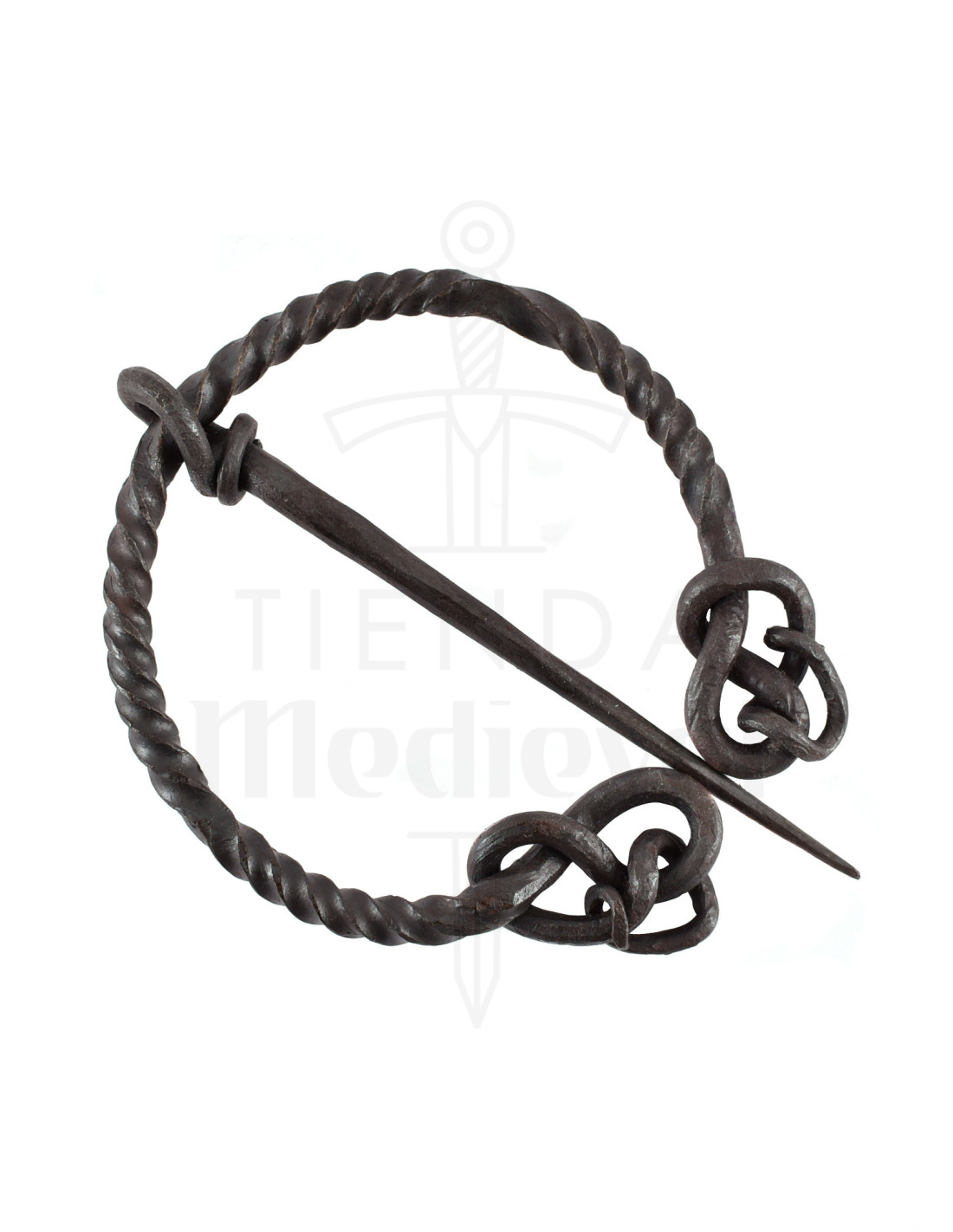 Imagina un prendedor que no solo asegura tu ropa con firmeza, sino que también cuenta una historia con cada giro de su metal. Su diseño retorcido cuatro veces crea una textura única que atrapa la luz y la atención, aportando un carácter robusto y sofisticado a cualquier atuendo. Los extremos entrelazados, que parecen colas de serpiente, añaden un detalle artístico que remite a símbolos de poder y protección, ideales para destacar en eventos de recreación histórica o en tu día a día con un look vintage.